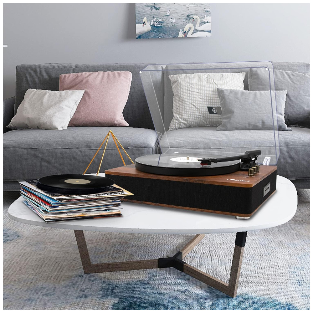 Toca discos sem fio Ele pode fornecer emparelhamento rápido e estável com qualquer dispositivo Bluetooth, como smartphones iOS ou Android, tablets, laptops, de até 33 pés 10 metros de distância sem perda de sinal ou interrupções de música.