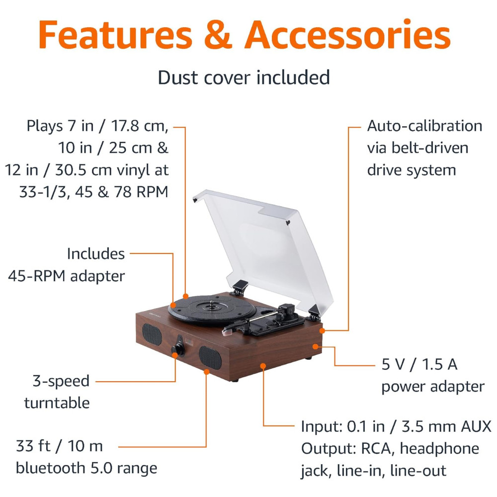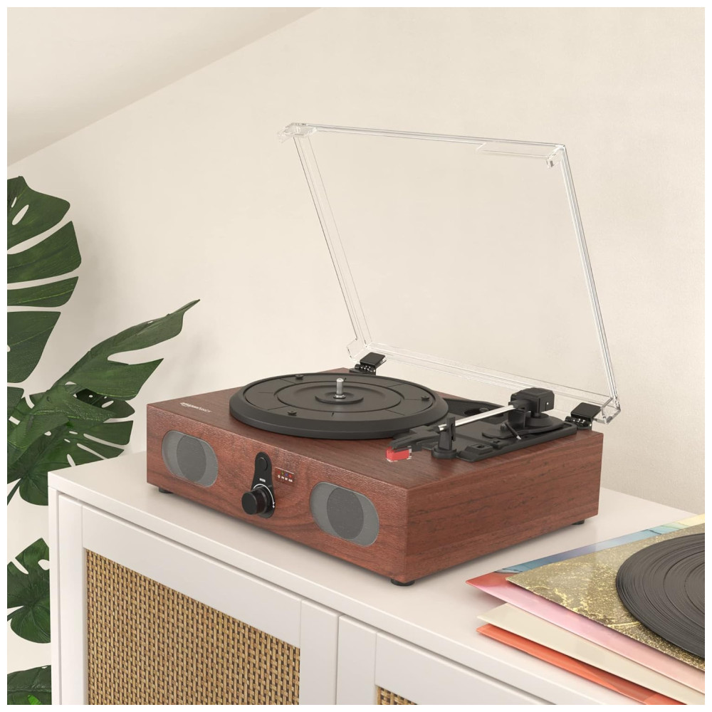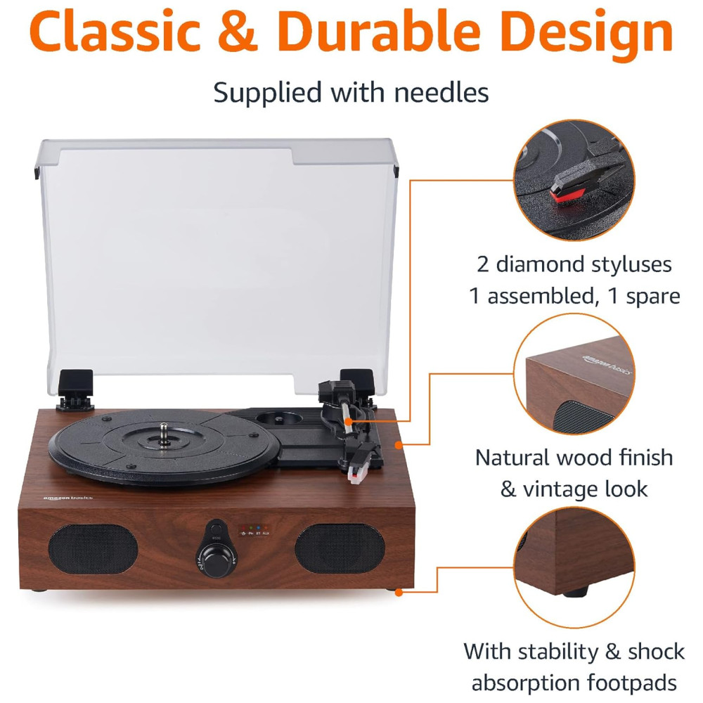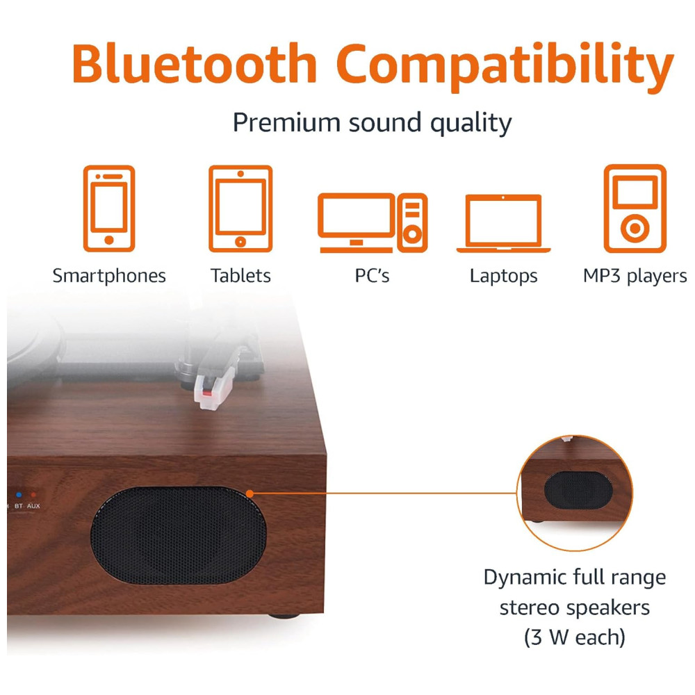 Toca Discos Retrô com Alto Falantes Integrados e Bluetooth Marrom