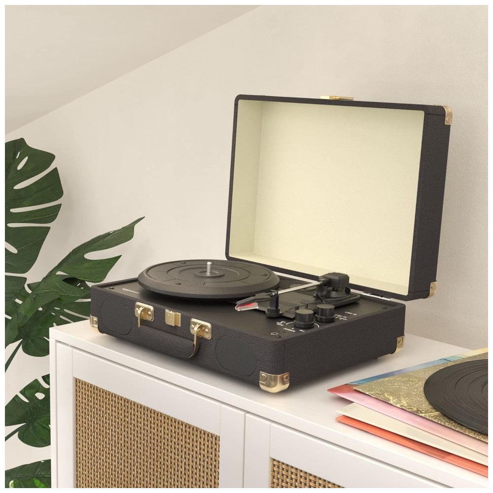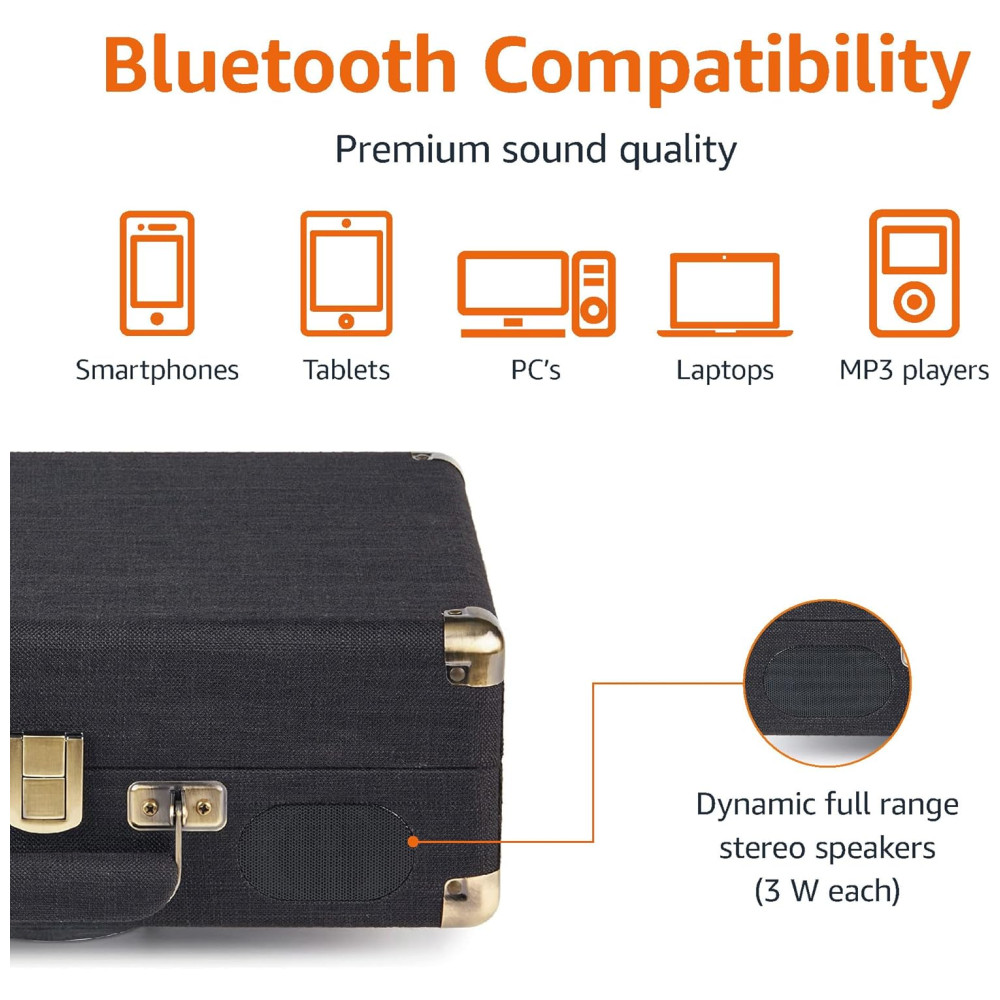 Toca Discos Retrô com Alto Falantes Integrados e Bluetooth Preto