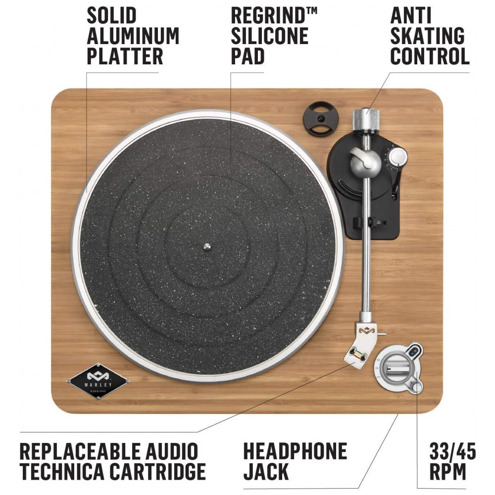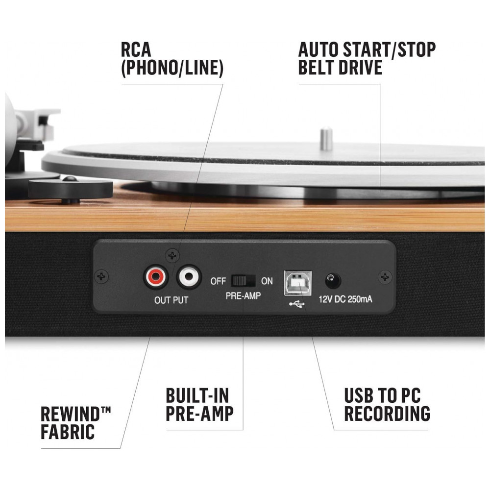 RECURSOS PREMIUM Compatível com qualquer alto falante ou fone de ouvido Bluetooth, você experimentará o som clássico de Marley, não importa como você se conecte. Reproduza qualquer disco de 33 ou 45 RPM enquanto o controle antiderrapante e o início, parada automático ajudam a proteger seu vinil contra danos. A porta USB e o cabo incluído permitem que você converta seus registros em um formato digital.