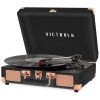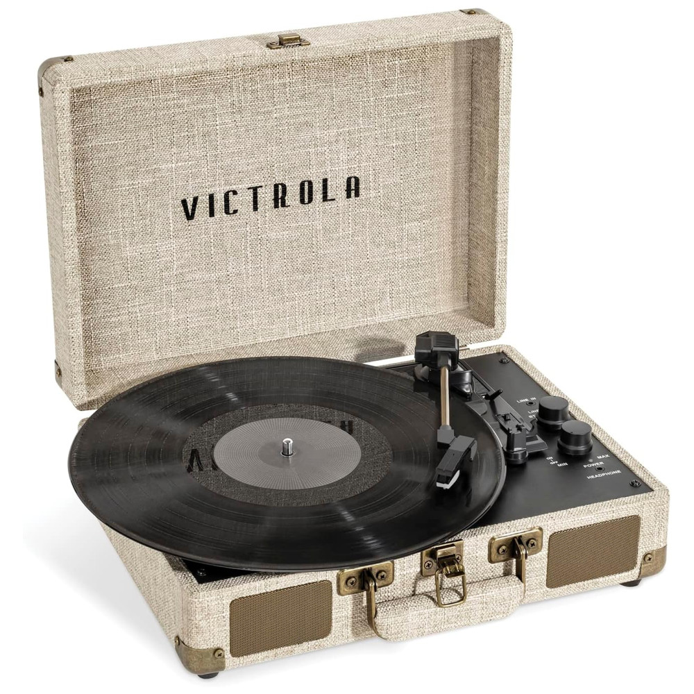 O toca discos de 3 velocidades 33 1, 3, 45, 78 RPM com alto falantes integrados proporciona uma experiência de audição nítida e clara.