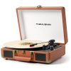 Desfrute da combinação perfeita entre o clássico e o moderno com o toca-discos Retrolife. Feito com material de alta qualidade em couro PU marrom, e detalhes vintage em metal e tela. Com design flexível e alça portátil resistente, você pode ouvir sua música em qualquer lugar e a qualquer momento. Este toca-discos de três velocidades (33 1/3, 45, 78 RPM) oferece qualidade de som premium aprimorada e suporta discos de vinil.Conecte-se facilmente via Bluetooth, RCA, Aux-In ou fones de ouvido para uma experiência musical completa. Possui dois alto-falantes estéreo embutidos de 3W, função de parada automática para proteger seus discos e entrada Aux-In e saída RCA para ampliar suas opções musicais.