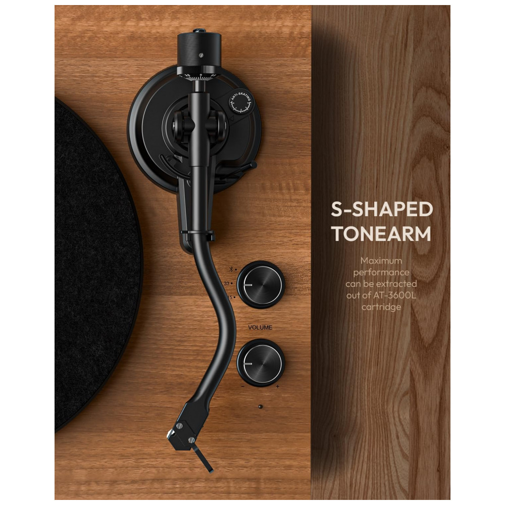 Sistema Audiófilo Premium: O SoulBox S1 combina potentes alto-falantes de estante estéreo com tecnologia de streaming e um pré-amplificador de fono integrado comutável. Reproduza seus discos de vinil favoritos ou transmita música de seus dispositivos inteligentes – um sistema audiófilo de nível de entrada projetado para máxima versatilidade. Experiência Sonora Rica e Dinâmica: Experimente um som analógico verdadeiro com um tweeter de domo de seda de 25mm para agudos cristalinos, um cone de fibra de vidro de 130mm para médios encorpados e um grave encorpado e preciso. Equilibrado pela avançada tecnologia de crossover da Qlearsoul, cada nota é entregue com precisão e calor. Braço em Forma de S Inovador: O braço em forma de S apresenta contrapeso ajustável e um novo botão antirrotação. Com o cartucho de alta performance AT3600L, garante rastreamento preciso da agulha, minimizando pulos e proporcionando reprodução livre de distorções. Estabilidade de Velocidade de Precisão: Com um motor DC de última geração, um sistema de acionamento por correia e um prato de ferro fundido de 1,2kg, o SoulBox S1 garante controle de velocidade impecável a 3345 RPM. Seu gerador de velocidade eletrônico de precisão garante reprodução estável e confiável para cada disco. Perfeito para Todo Amante de Vinil: Seja você um iniciante, um colecionador experiente ou redescobrindo seu amor pelo vinil, o SoulBox S1 oferece materiais premium, estética atemporal e qualidade sonora vibrante. Tudo isso, sem comprometer a acessibilidade.