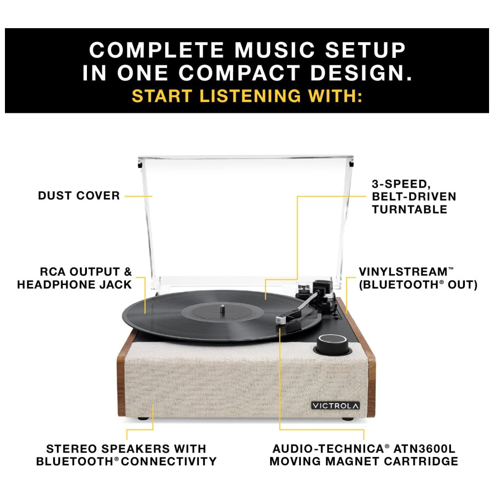 Toca-discos Victrola Eastwood II em Carvalho com Bluetooth Vinyl Stream Alto-falantes Embutidos Estilo Vintage 3 VelocidadesVictrola Store