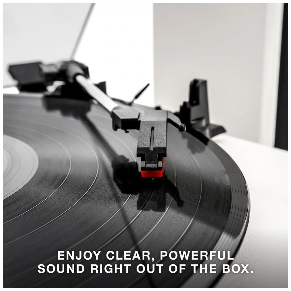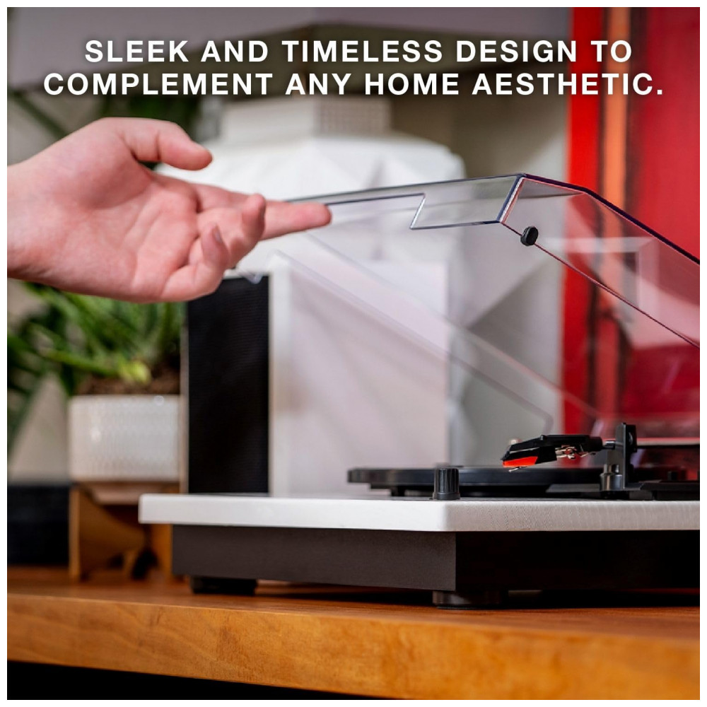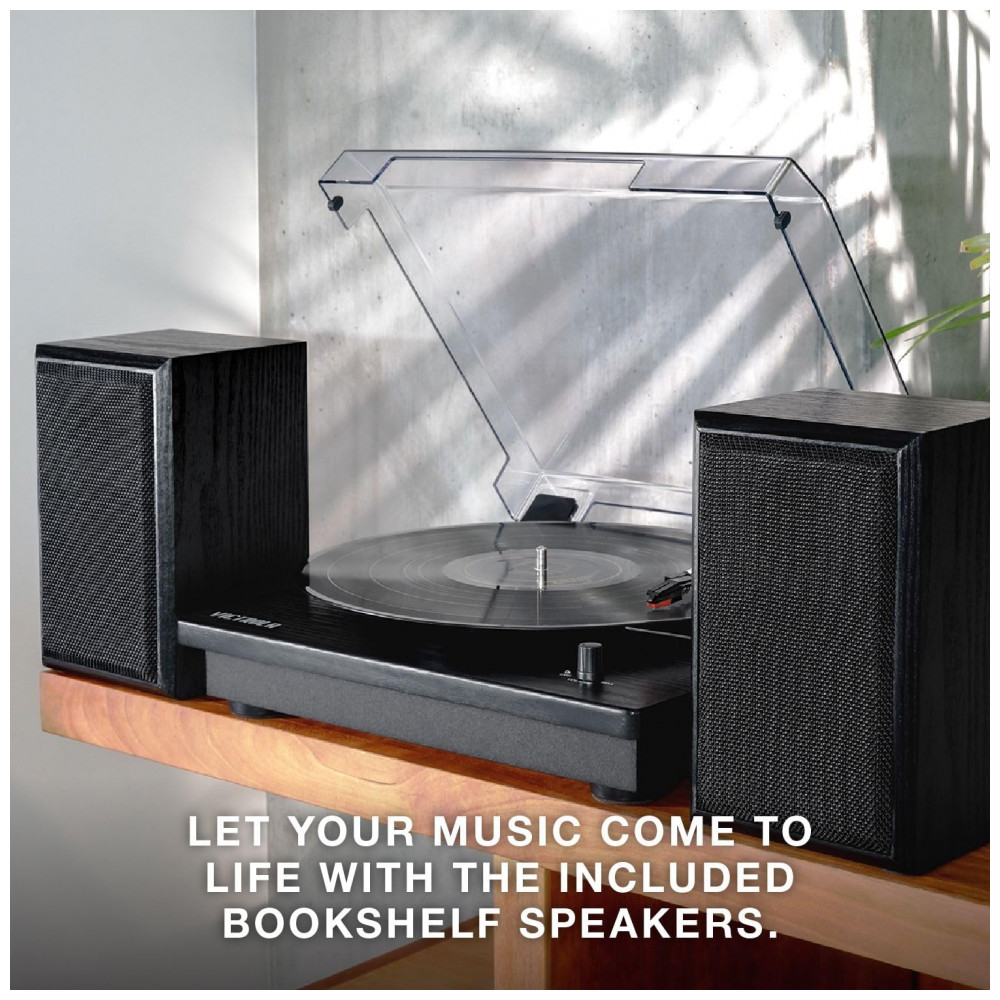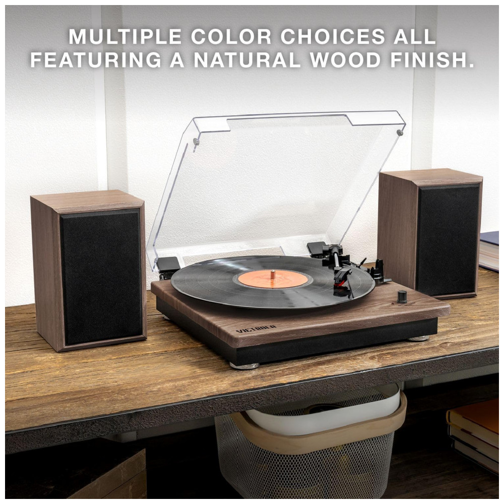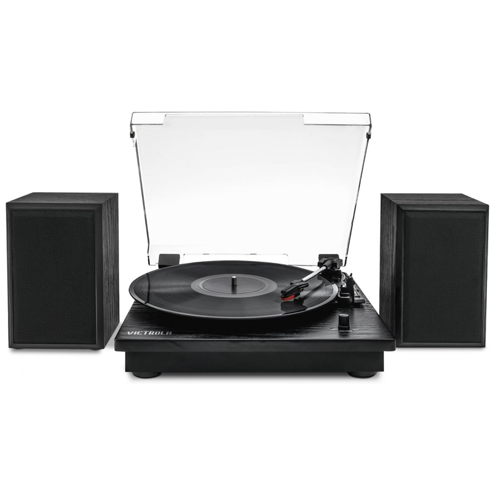 O Toca-discos Victrola Montauk com Bluetooth é tudo o que você precisa em um sistema de prateleira. Apresentando um toca-discos de 3 velocidades e correia capaz de reproduzir todos os seus discos de vinil favoritos, ele se conecta facilmente aos alto-falantes de prateleira inclusos para uma verdadeira experiência de audição estéreo. Com acabamento em madeira natural e um design moderno, encaixa perfeitamente em qualquer ambiente, sendo o sistema de toca-discos perfeito para sua casa. Conecte-se via Bluetooth para transmitir música sem fio do seu dispositivo inteligente ou utilize a saída RCA para conectar a qualquer alto-falante externo. O tampo removível mantém seus discos livres de poeira e arranhões.