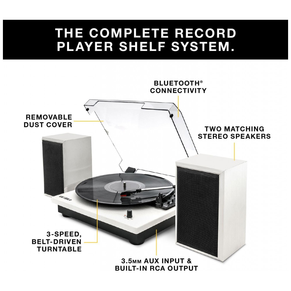 Toca-discos Victrola Montauk com Bluetooth 3 Velocidades Alto-falantes Estéreo Saída RCA Entrada Auxiliar de 3.5mm Tampa Removível