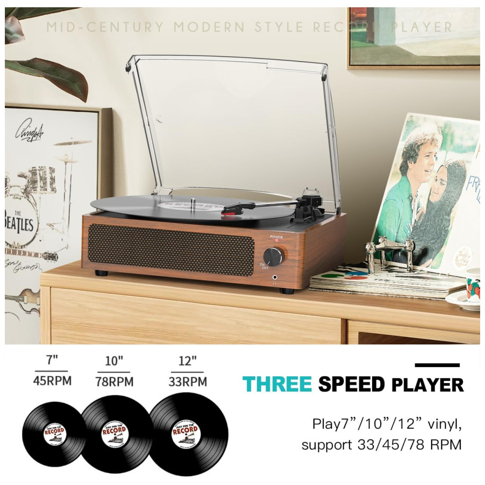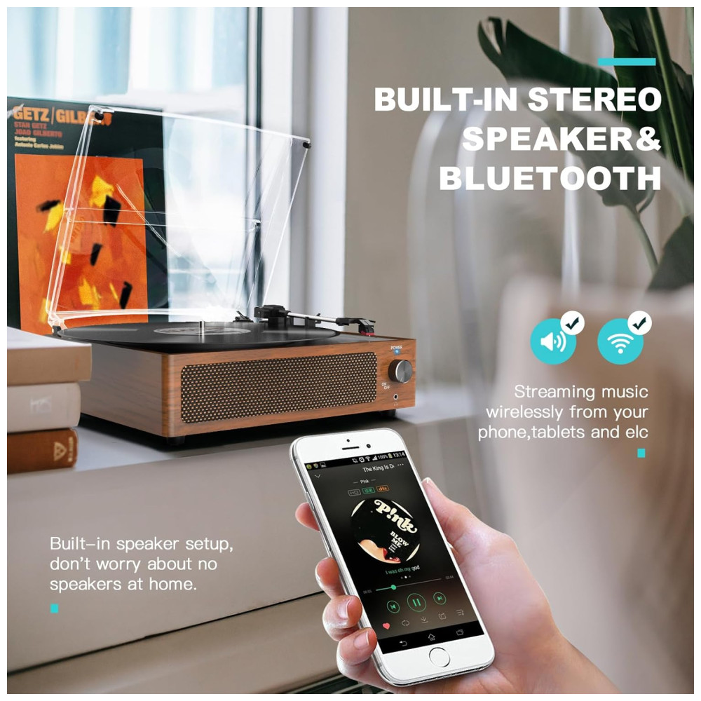 Desfrute de uma experiência musical nostálgica com o Toca-discos de 3 velocidades e acionamento por correia. A agulha com ponta de diamante reproduz discos de 33 1/3, 45 e 78 RPMs, com função de parada automática ao final. Conecte-se via Bluetooth para tocar suas músicas digitais, sem a necessidade de vinis. Os alto-falantes embutidos fornecem um som de alta qualidade. O design vintage em madeira confere um toque especial ao ambiente, ideal para encontros em família ou momentos de relaxamento. Além disso, possui saída RCA, AUX e entrada para fones de ouvido para maior versatilidade.