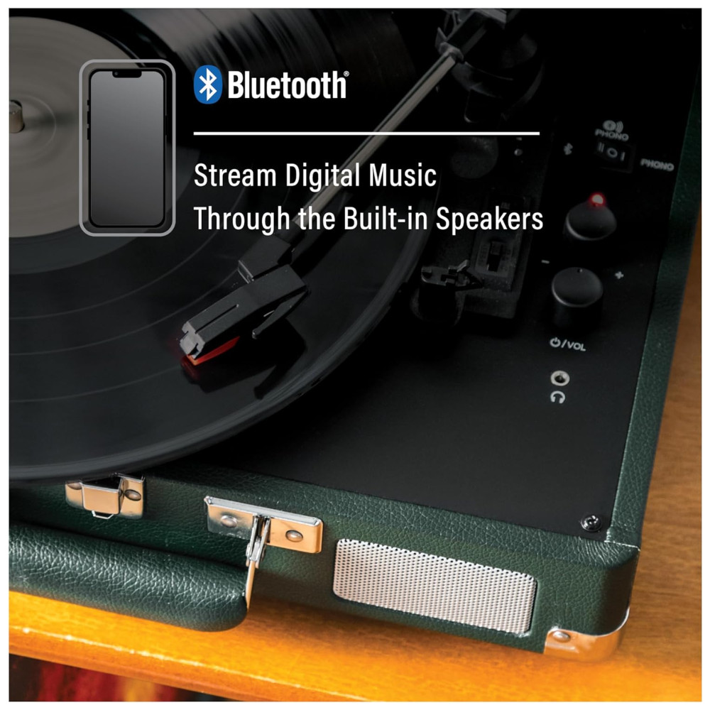 Toca-discos Vintage Crosley CR8005FEM Cruiser Plus 3 Velocidades com Bluetooth e Maleta Portátil Verde Escuro