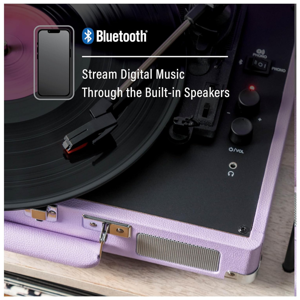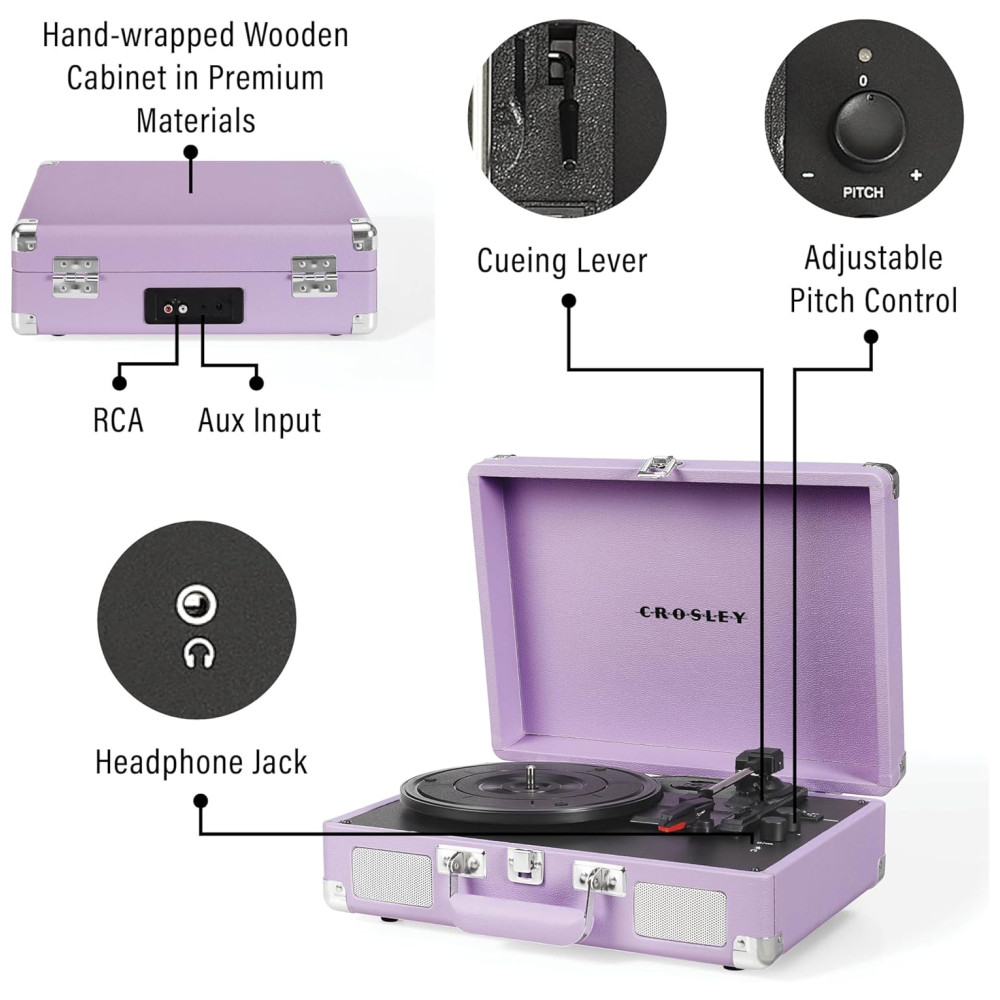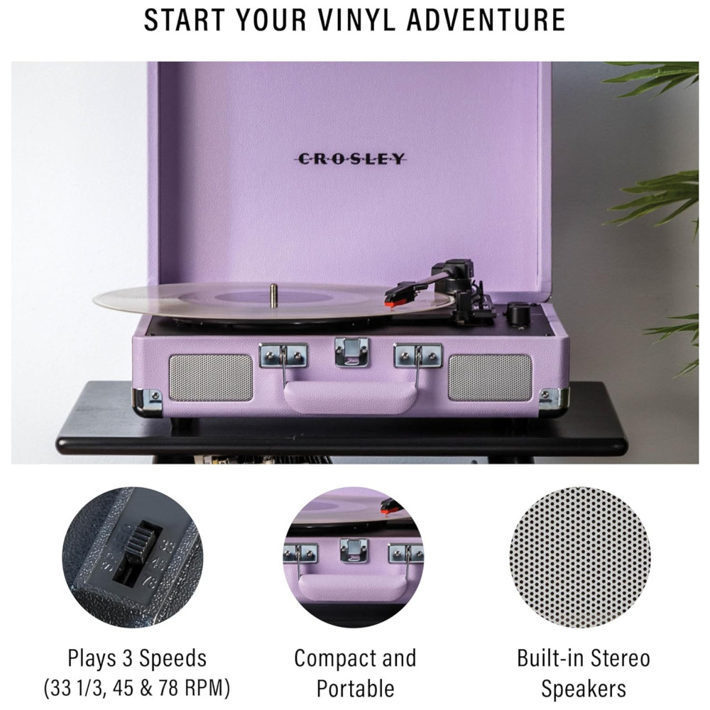 Toca-discos Vintage Crosley CR8005FLN Cruiser Plus Bluetooth de 3 Velocidades em Maleta Lavanda