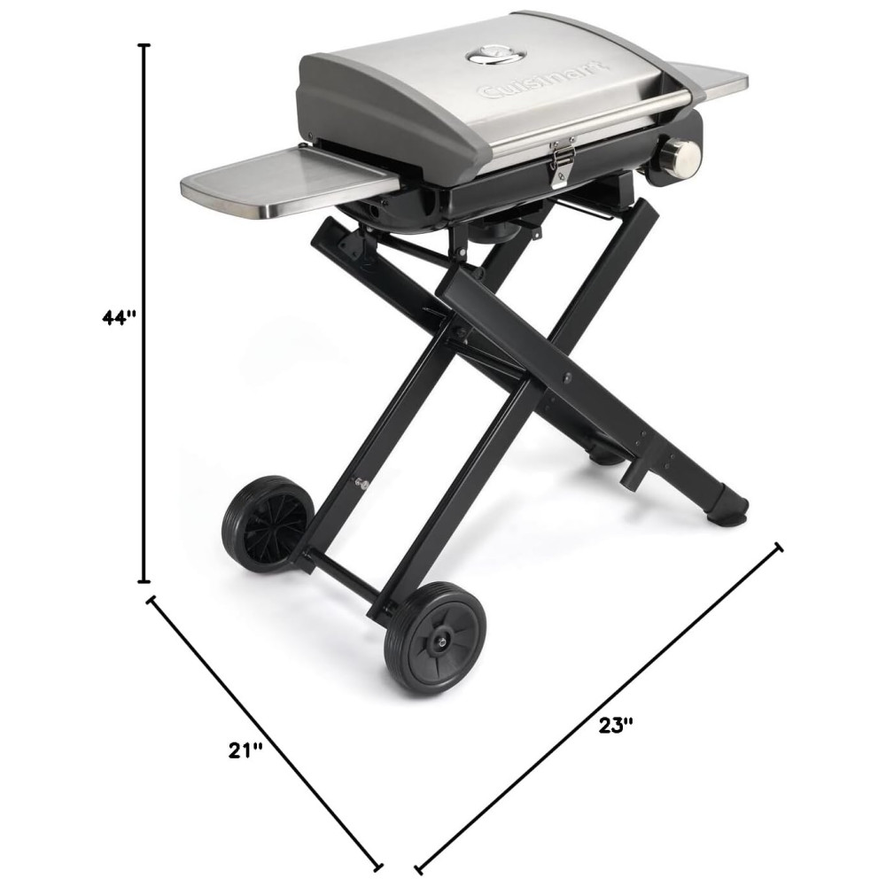 MEDIDAS COMPACTAS PARA FÁCIL CONFIGURAÇÃO E TRANSPORTE A grade mede 44 x 23 x 21 polegadas quando dobrada, 41 x 23 x 36 polegadas totalmente aberta. Ideal para decks, pátios e varandas, camping, uso não autorizado e muito mais.