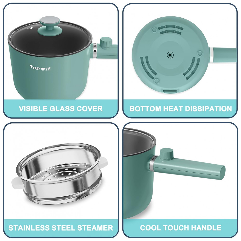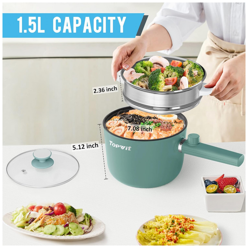TopWit Panela Elétrica com Vaporizador 15L – Cozinhe Ramen Massas e Mais com Controle Duplo de Potência