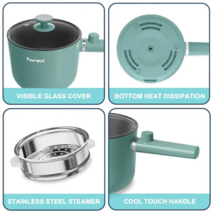 Panela Elétrica Multiuso com Vaporizador de Aço Inoxidável 304: cozinhe legumes e frutos do mar no vaporizador enquanto prepara ramen, hot pot, sauté e frituras na parte inferior. O cabo longo facilita o manuseio e a limpeza. Controle Duplo de Potência: com opções de 250W e 600W, adapte a potência às suas necessidades diárias. Use 250W para aveia, espaguete, panquecas e ovos, e 600W para bifes, salmão, sauté e hot pot. Capacidade Ideal e Portátil: com 1,5 litros, atende até 2 pessoas confortavelmente. Mede 18 cm de diâmetro por 13 cm de profundidade, ideal para dormitórios, cozinhas pequenas, apartamentos, escritórios, vans e acampamentos. Revestimento Antiaderente Saudável: feito com material alimentar seguro, permite cozinhar com menos óleo e facilita a limpeza, além de ser não tóxico e ecológico. Proteção Dupla de Segurança: o elemento de aquecimento embutido em formato arredondado distribui o calor uniformemente e evita que alimentos queimem. Possui proteção contra superaquecimento e fervura a seco, protegendo a panela contra danos causados por uso incorreto.