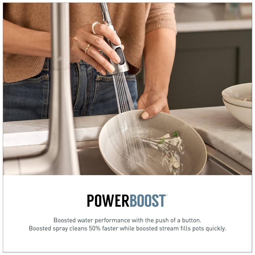 A tecnologia Moen Smart Faucet foi desenvolvida para facilitar as atividades diárias na cozinha, com controle preciso de temperatura e medição exata. Com quatro métodos de controle voz, aplicativo, viva voz ou manual a torneira inteligente oferece predefinições personalizáveis para medições e temperaturas exatas, tornando as tarefas diárias mais fáceis. A torneira é ativada por voz e viva voz, independentemente da posição manual da alça, sendo a única torneira de cozinha ativada por voz no mercado comercial. O sensor de onda automático permite que o fluxo de água seja iniciado e interrompido com um simples movimento da mão, proporcionando conveniência mãos livres. O design versátil com acabamento cromado altamente reflexivo funciona com qualquer estilo de decoração. Para controle de voz, é necessário um smartphone, alto falante Amazon ou Google Smart e internet sem fio.