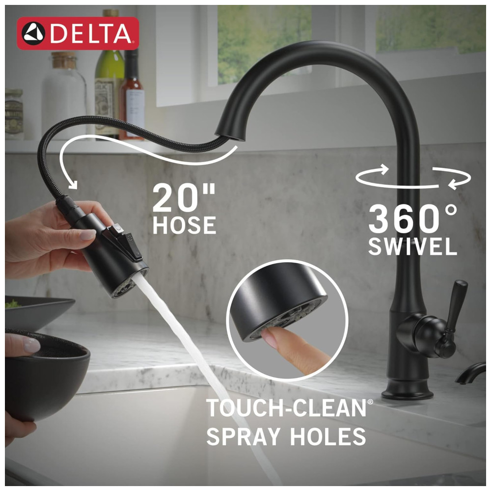Torneira Cozinha com Dispensador de Sabão e Pulverizador Pull Down de Ancoragem Magnética Delta Capertee 19877Z-BLSD-DST Preto Fosco