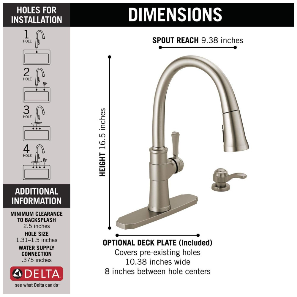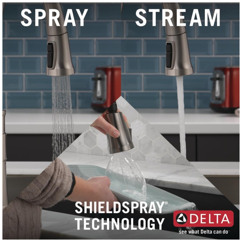 Torneira Cozinha com Dispensador de Sabão e Pulverizador Pull Down Inoxidável SpotShield Delta Spargo 19964Z-SPSD-DST Níquel Escovado