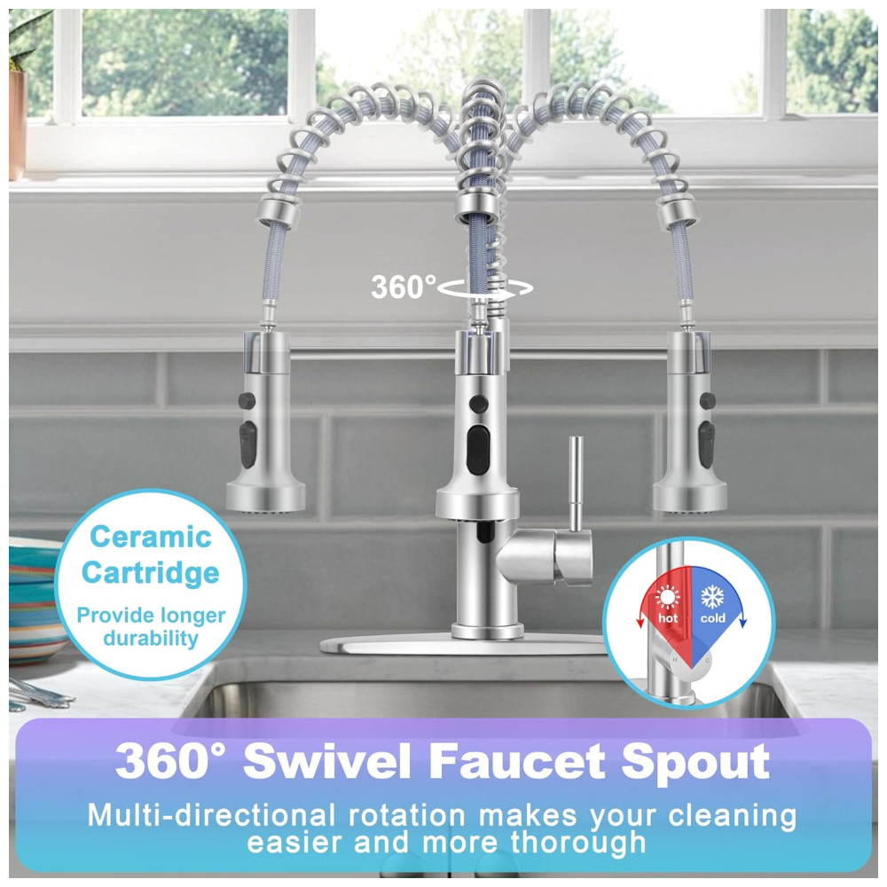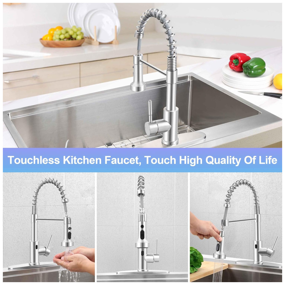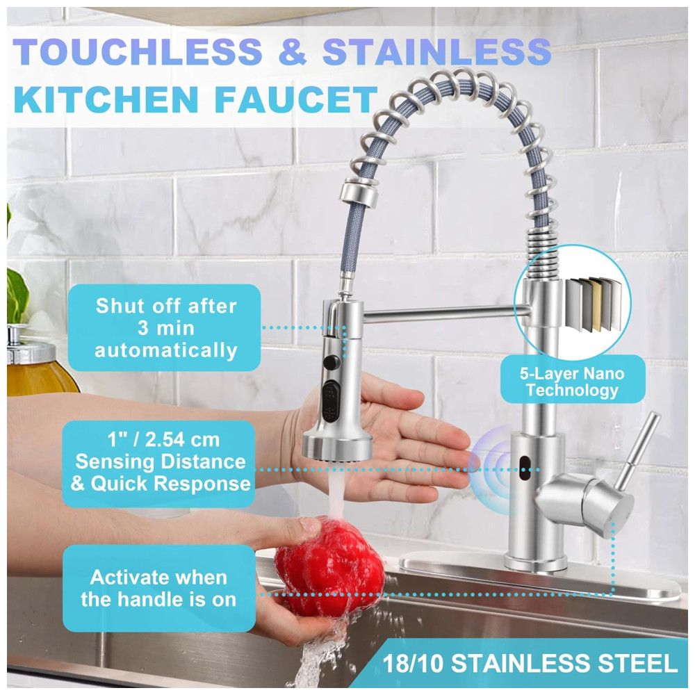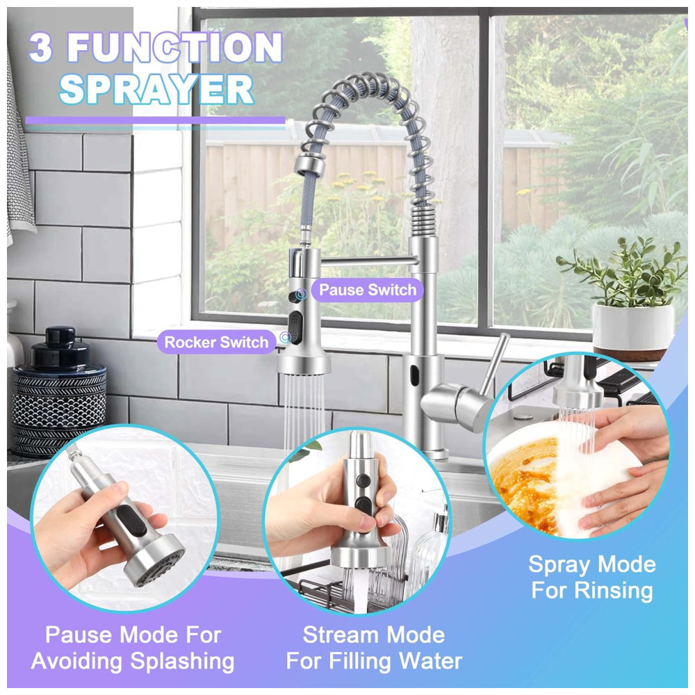 Torneira Cozinha com Dispensador de Sabão Sensor de Movimento e Pulverizador Puxar para Baixo Aço Inoxidável Herogo Níquel Escovado