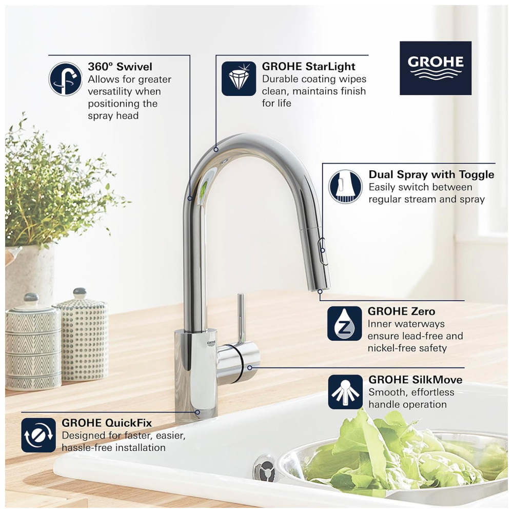 Torneira Cozinha com Pulverizador de Dupla Função e Fácil Instalação Acabamento StarLight GROHE 31479001
