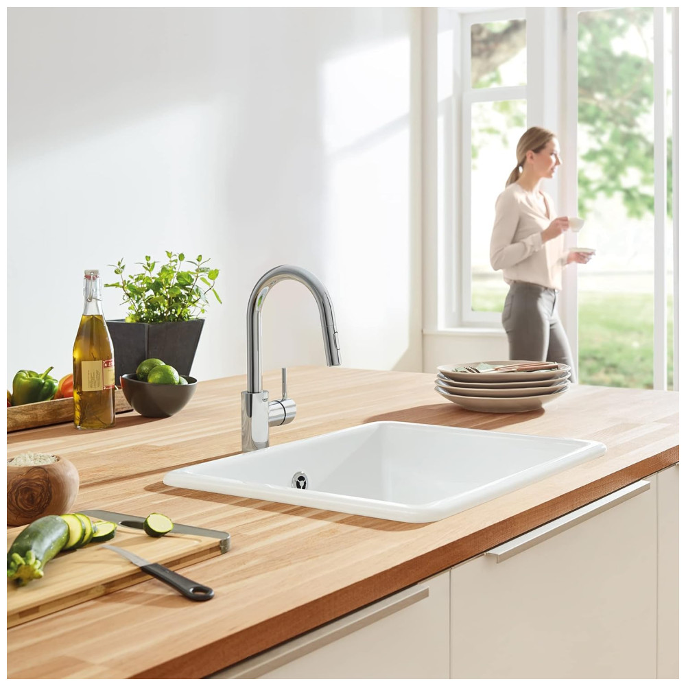 A torneira de cozinha GROHE com pulverizador de dupla função é a escolha ideal para quem busca eficiência, durabilidade e um toque de elegância na sua cozinha.