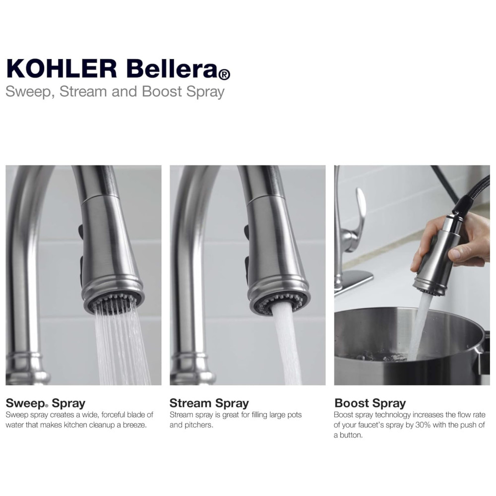 Torneira Cozinha com Pulverizador Pull Down de 3 Funções KOHLER 29106-VS Bellera Inoxidável Vibrante