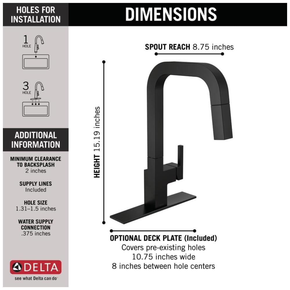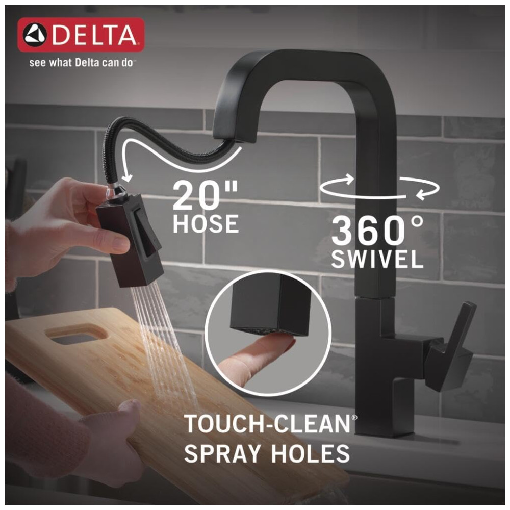 Torneira Cozinha com Pulverizador Pull Down de Ancoragem Magnética Delta 19825LF-BL Preto Fosco