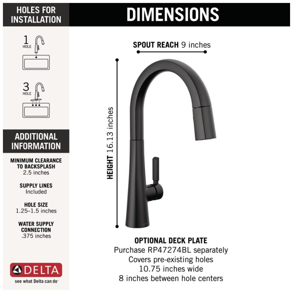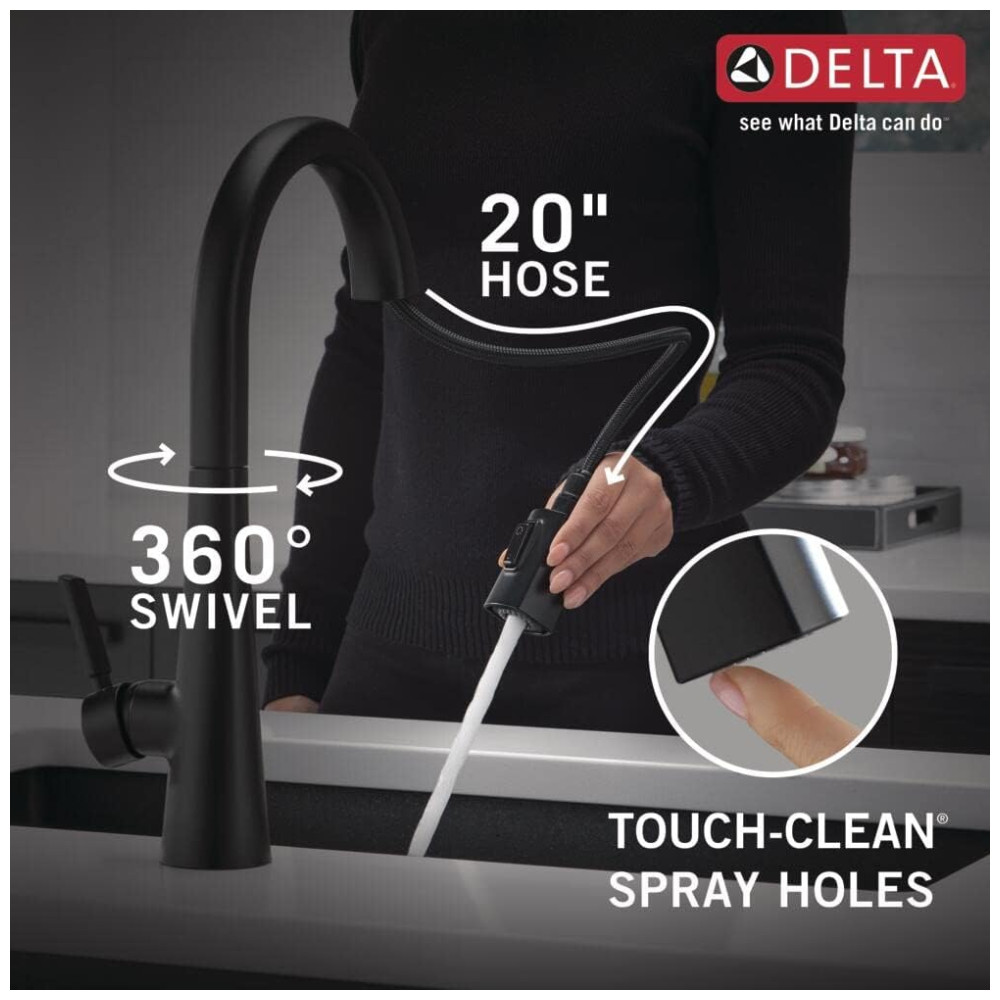 Torneira Cozinha com Pulverizador Pull Down de Ancoragem Magnética Furo Único Delta Monrovia 9191-BL-DST Preto Fosco