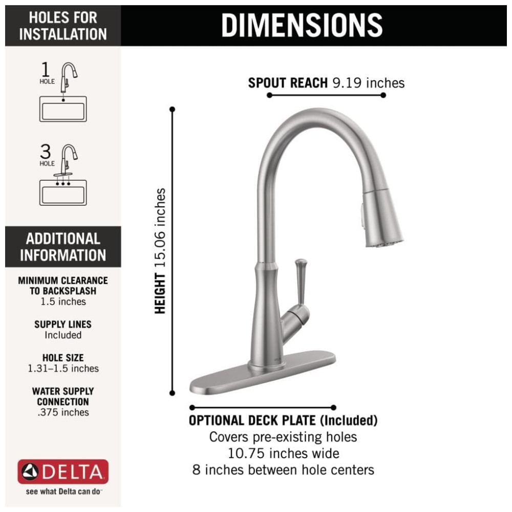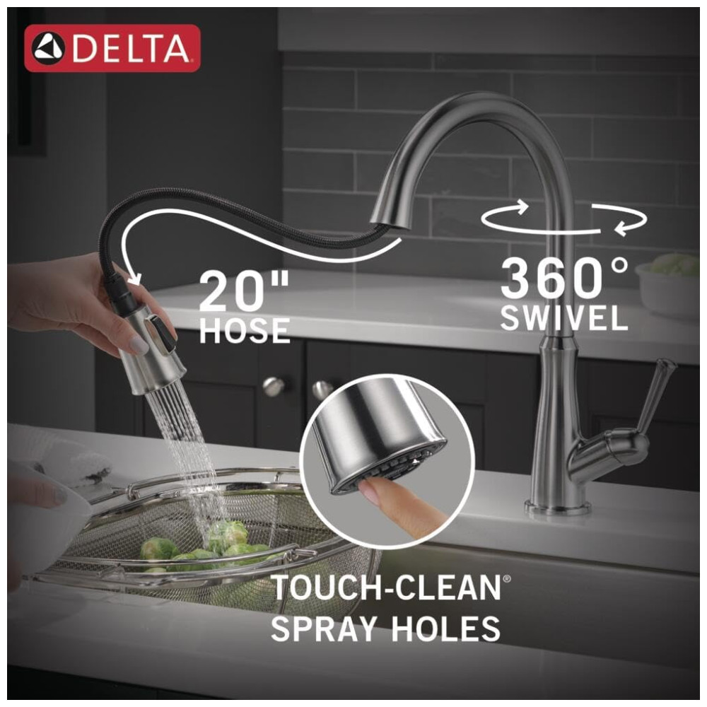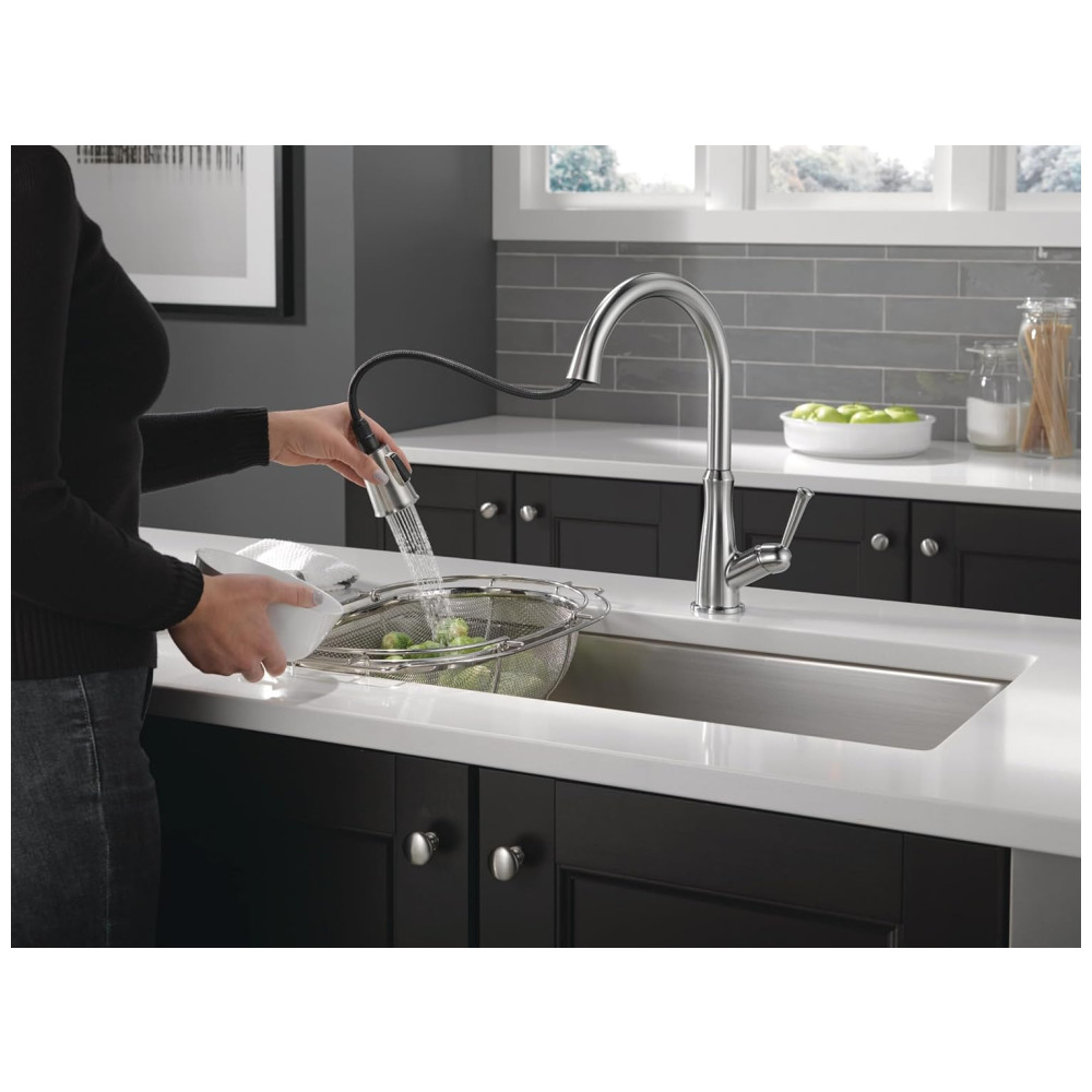 Torneira Cozinha com Pulverizador Pull Down e Ancoragem Magnética Ártico Inoxidável Delta Westville 9110-AR-DST Níquel Escovado
