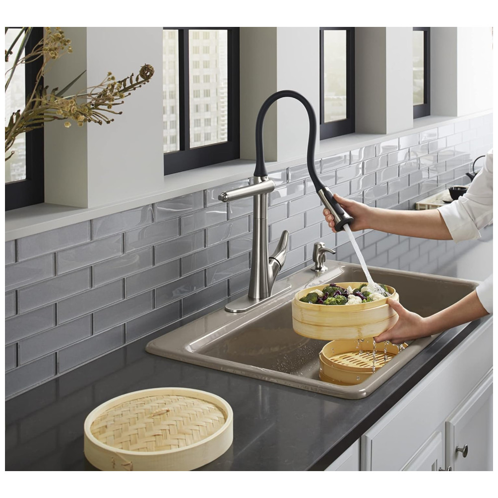As torneiras projetadas pela Kohler trazem uma elegância elevada para sua cozinha ou lavanderia, e seus vários estilos são feitos para caber em diferentes pias de cozinha, RV ou qualquer remodelação de cozinha. As válvulas de disco de cerâmica excedem os padrões da indústria de longevidade e desempenho, feitas para durar toda a vida em sua cozinha, com acabamento premium duradouro que é resistente à corrosão e manchas. As torneiras Kohler atendem aos critérios da EPA e são registradas na Comissão de Energia da Califórnia CEC1.