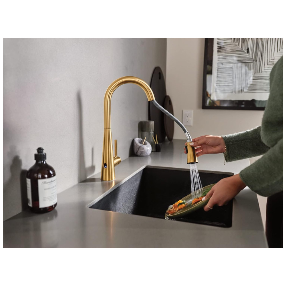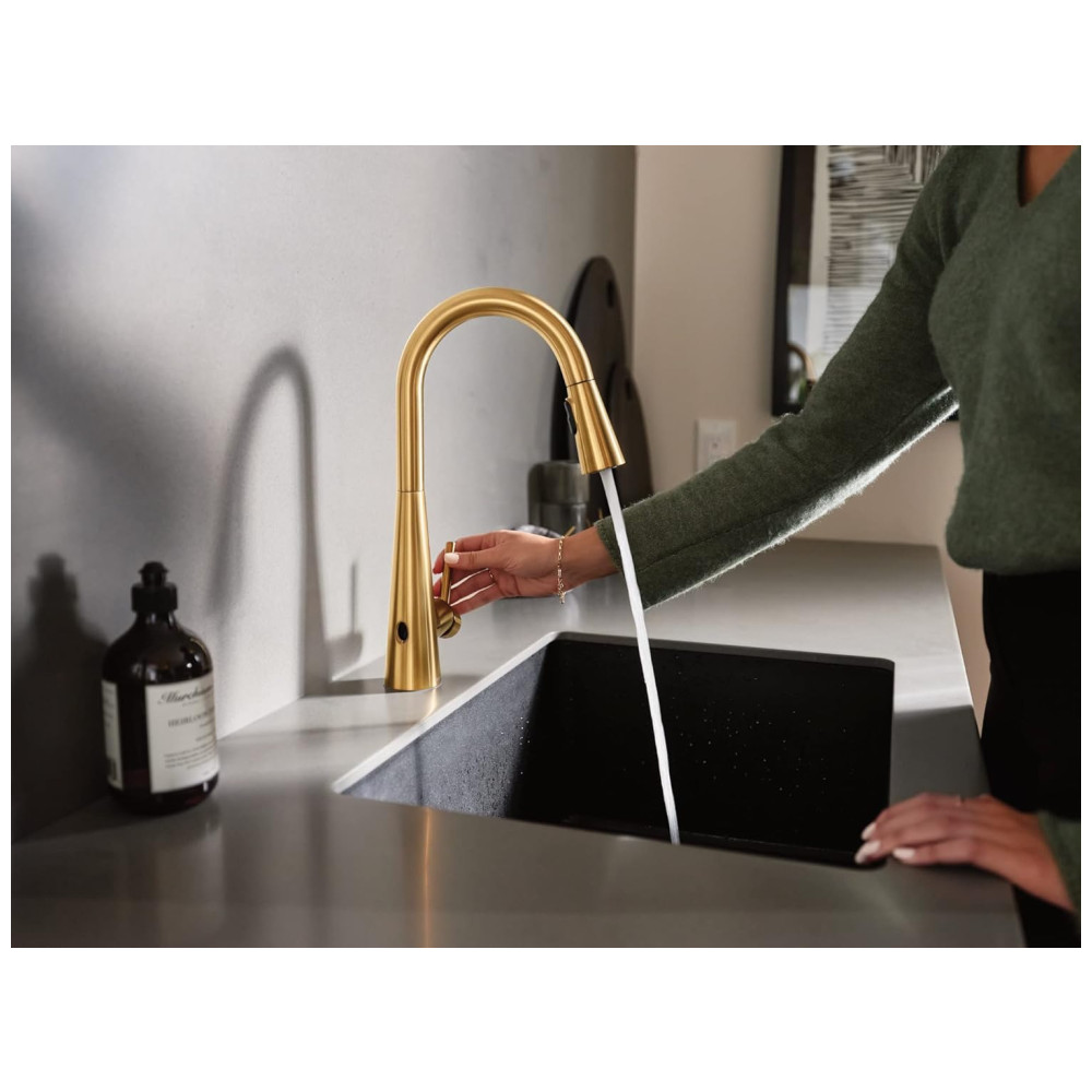 Torneira Cozinha com Sensor de Movimento e Pulverizador Pull Down Moen Sleek 7864EWBG Dourada
