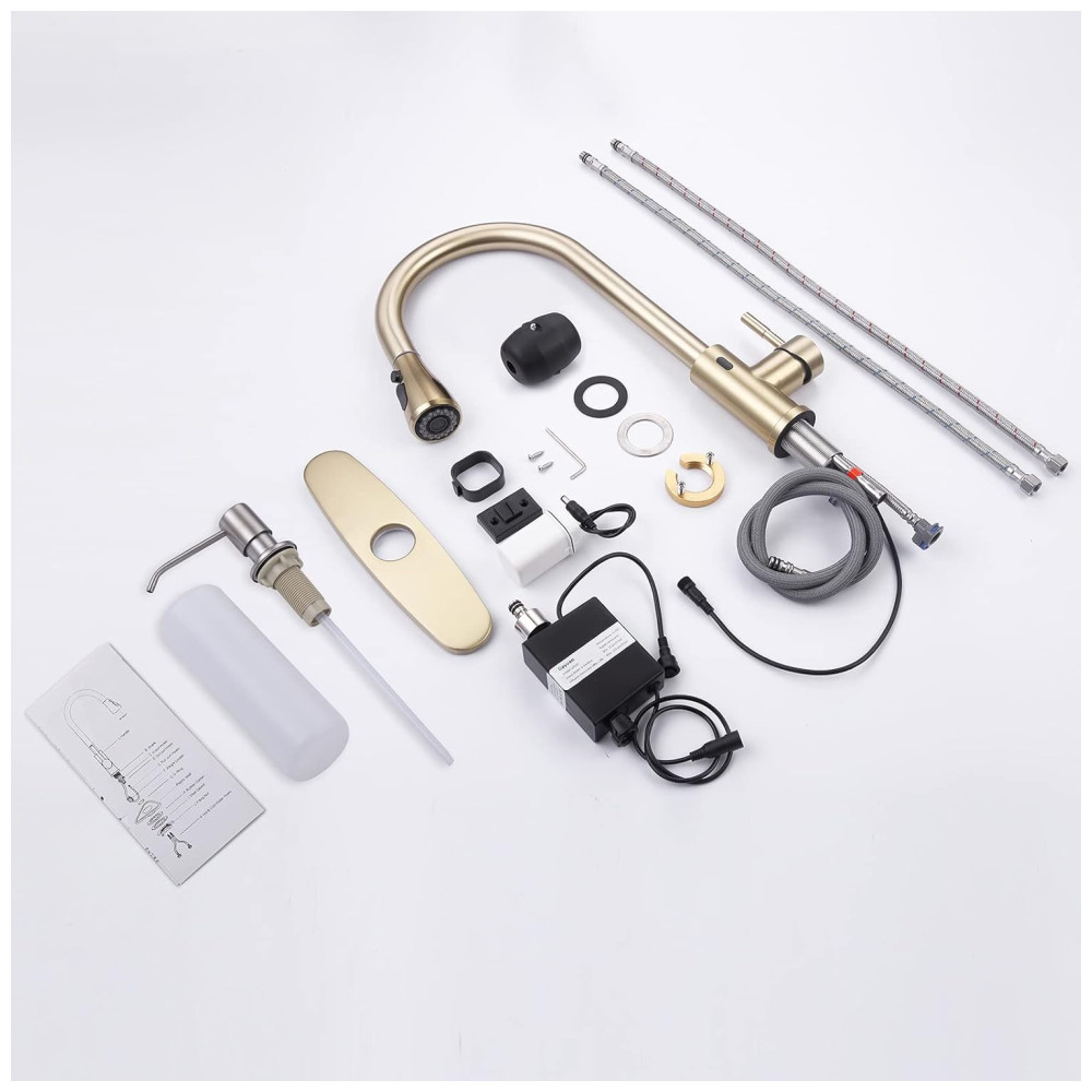 Torneira Cozinha com Sensor de Movimento Pulverizador e Dispensador de Sabão Aço Inoxidável Keer Dourada