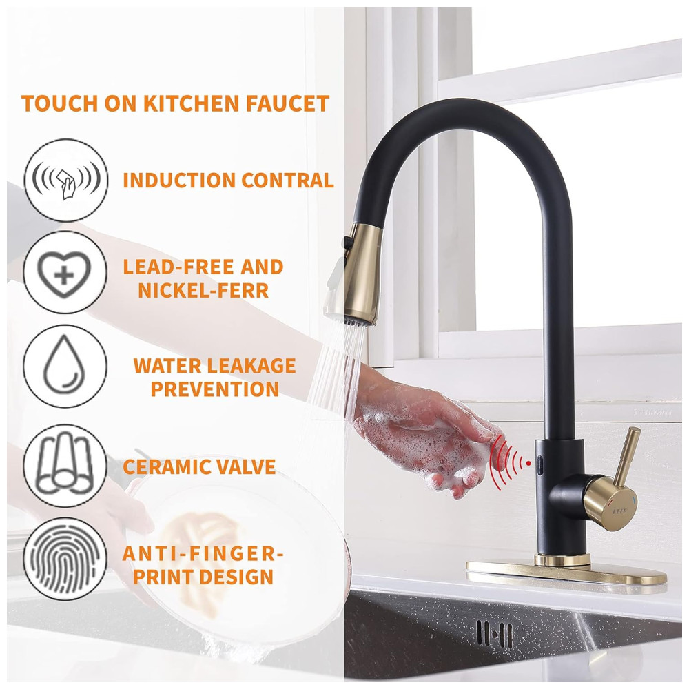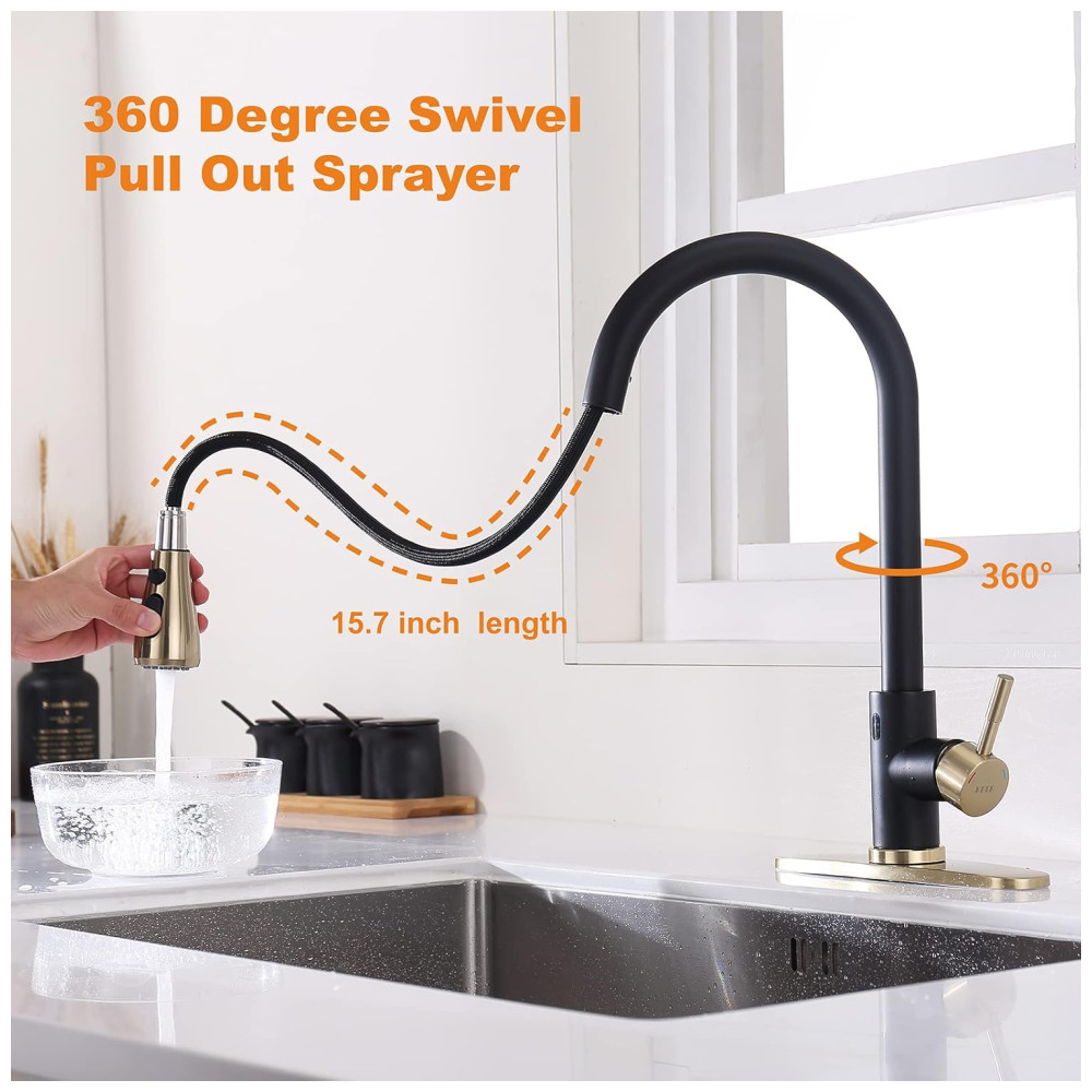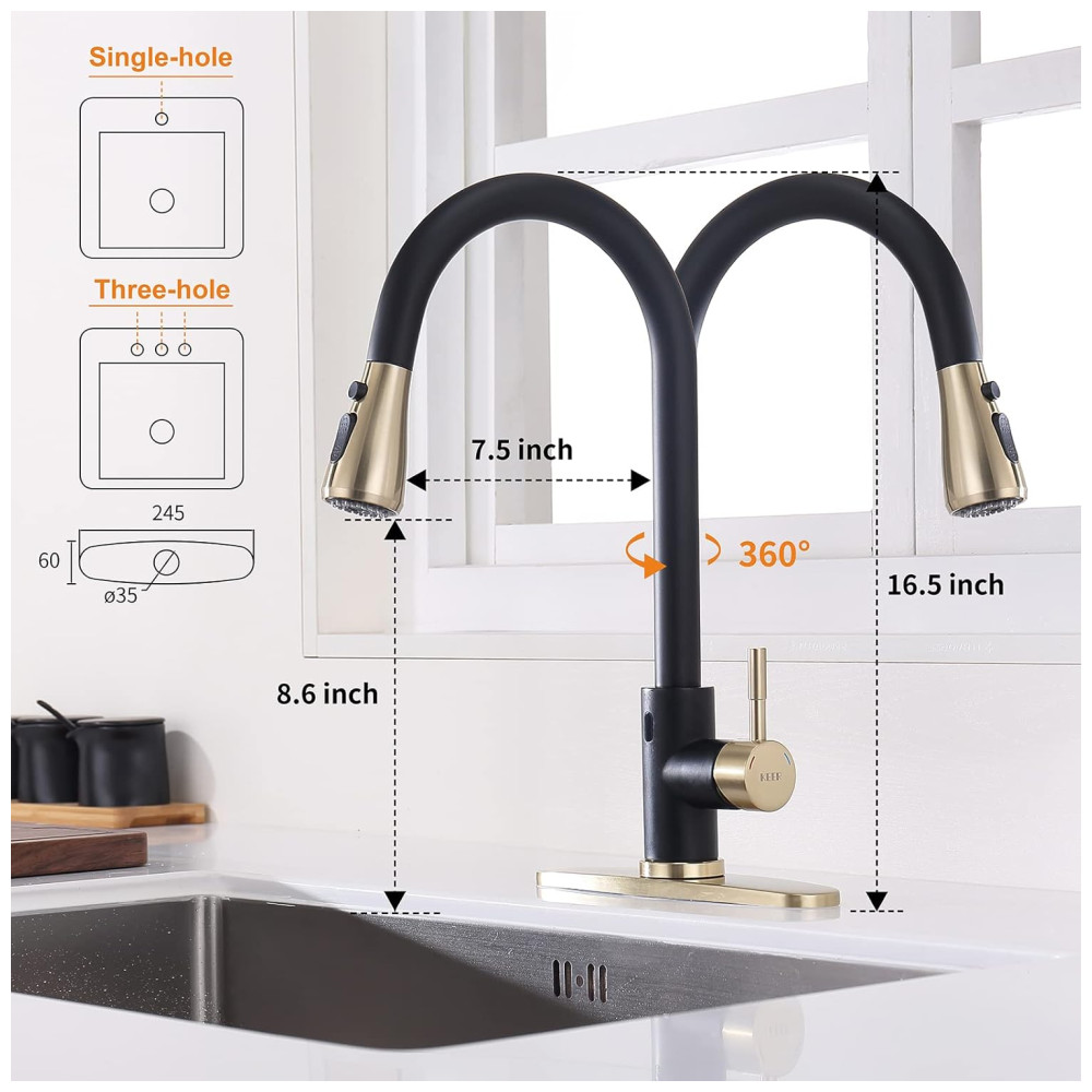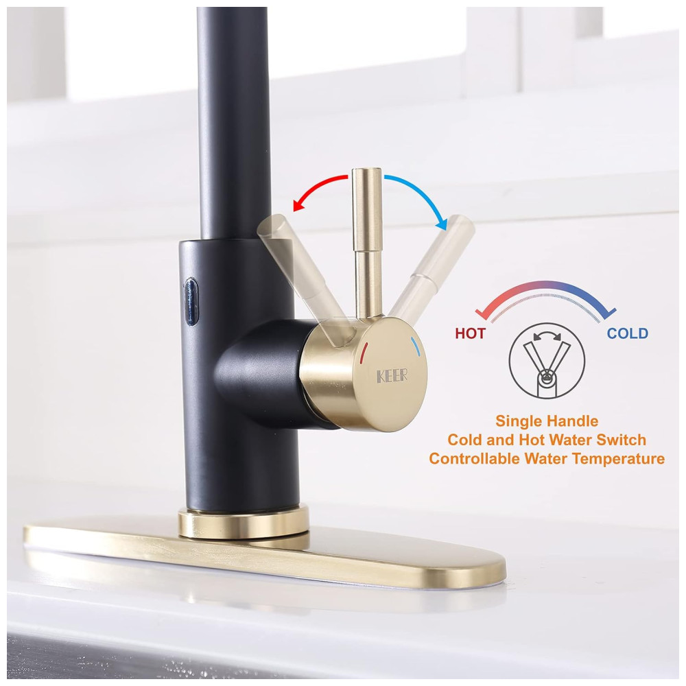 Torneira Cozinha com Sensor de Movimento Pulverizador e Dispensador de Sabão Aço Inoxidável Keer Preto Fosco e Dourada