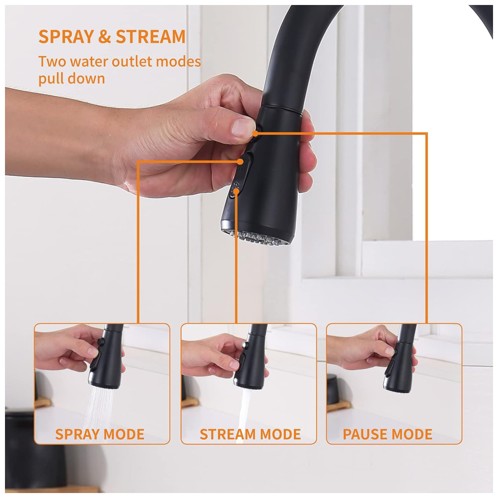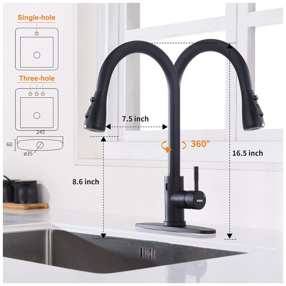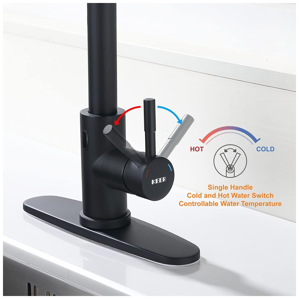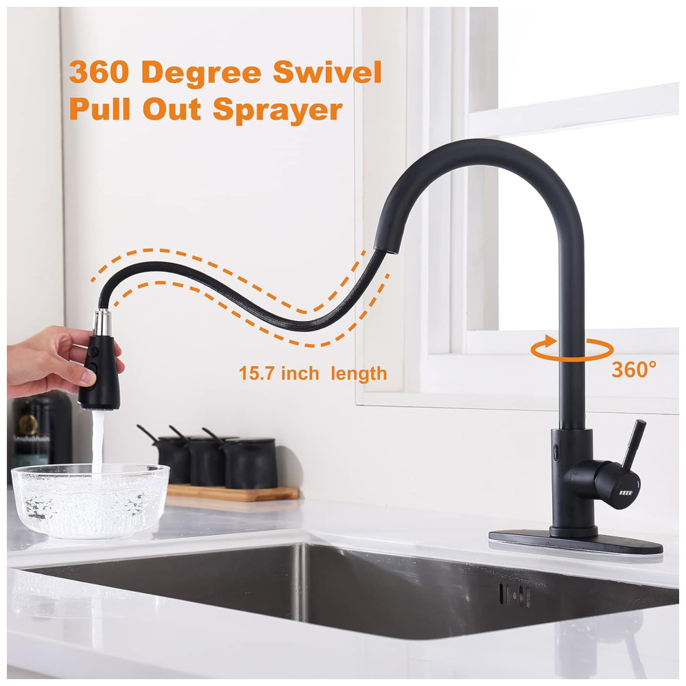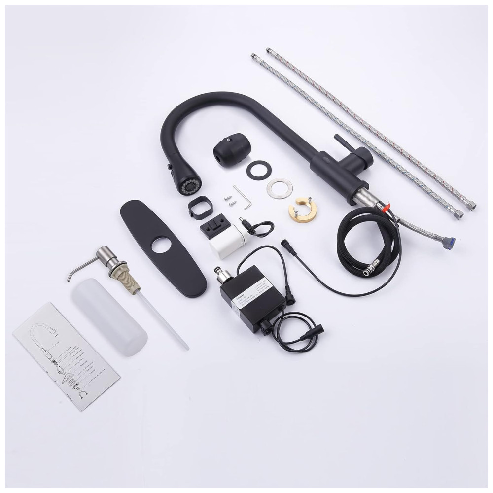 Torneira Cozinha com Sensor de Movimento Pulverizador e Dispensador de Sabão Aço Inoxidável Keer Preto Fosco