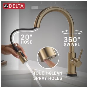 Torneira Cozinha com Tecnologia de Toque e Touchless Pulverizador Pull Down Delta 9159TL-CZ-DST Champagne Bronze