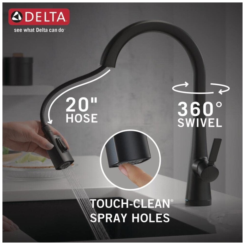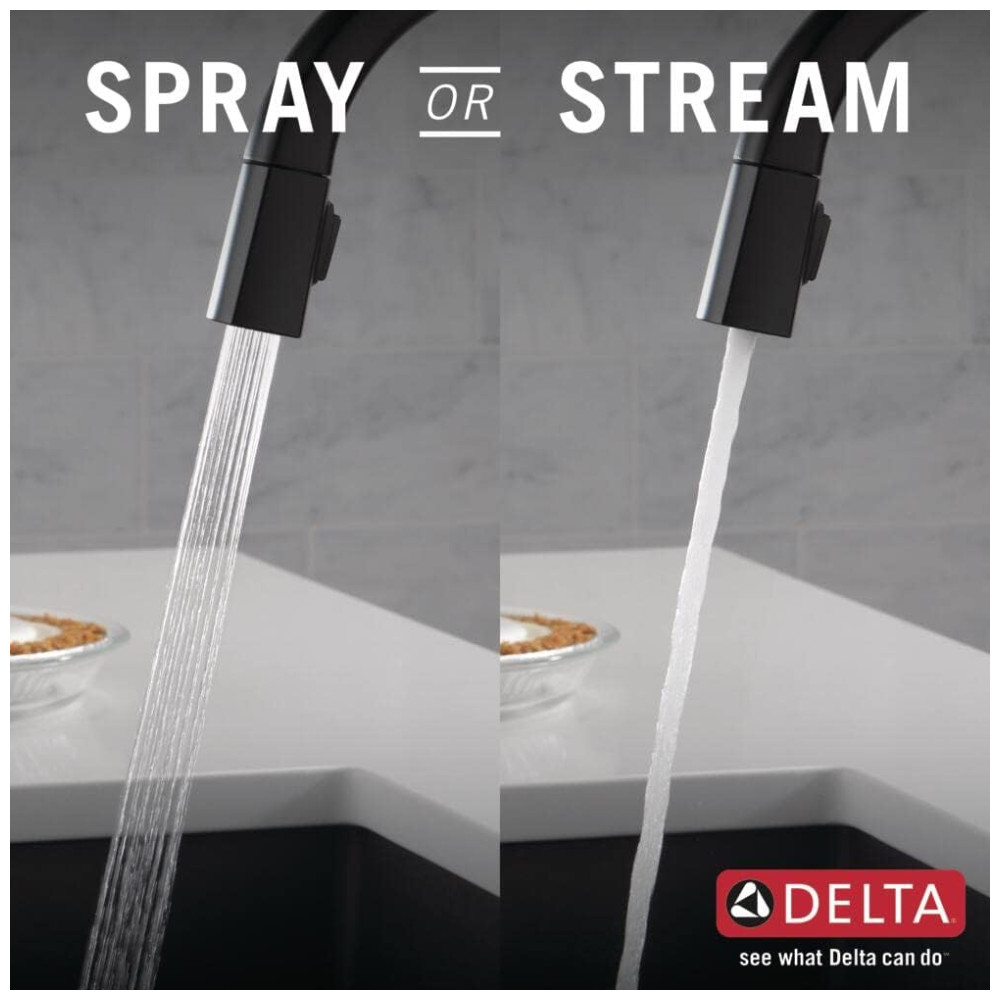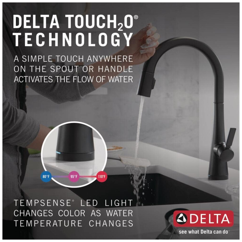 Torneira Cozinha com Tecnologia Delta Touch2O e Pulverizador Pull Down Delta Monrovia 9191T-BL-DST Preto Fosco