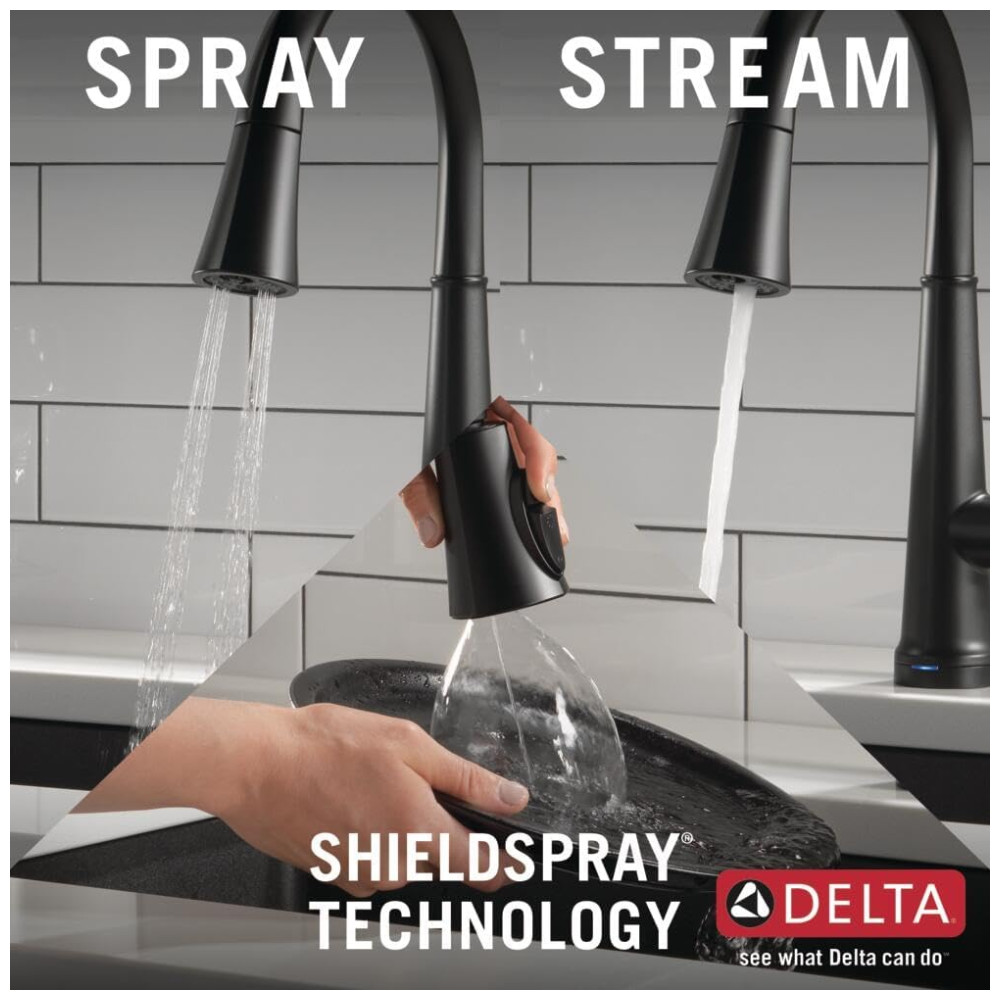 Torneira Cozinha com Tecnologia Tecnologia Touch2O e Pulverizador Pull Down Delta Emmeline 9182T-BL-DST Preto Fosco