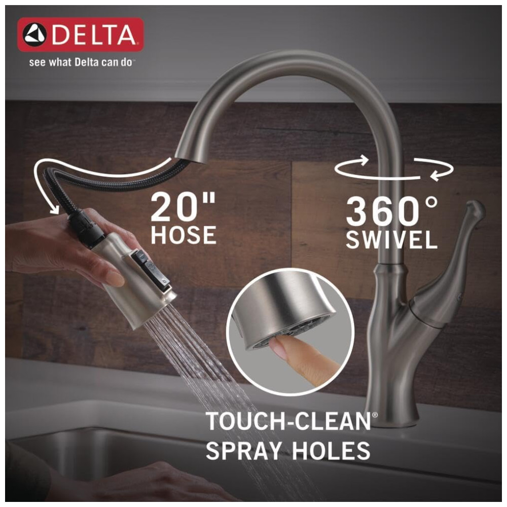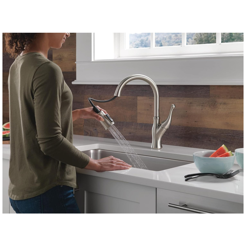 Torneira Cozinha com Tecnologia Touch e Pulverizador Pull Down de Ancoragem Magnética Inoxidável SpotShield Delta Ophelia Níquel Escovado