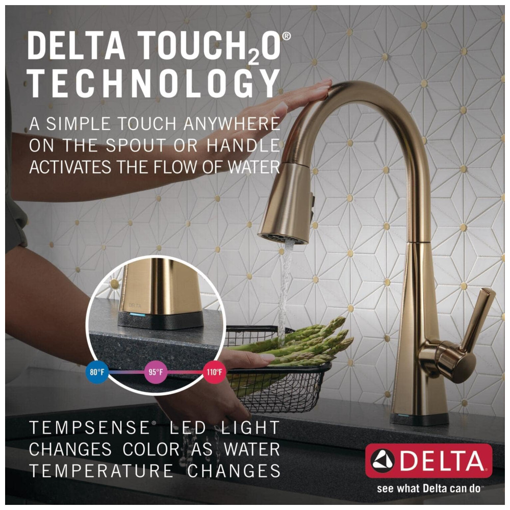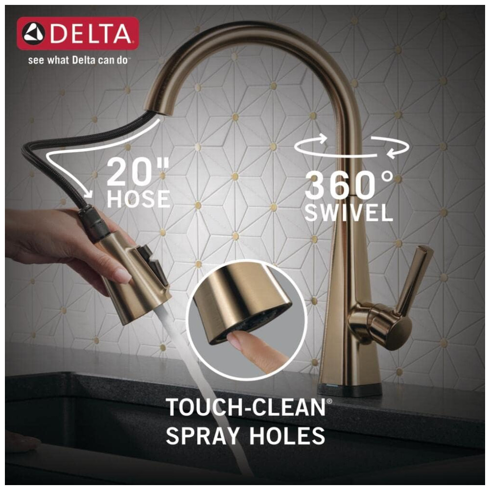 Torneira Cozinha com Tecnologia Touch20 e Pulverizador Pull Down Delta 19802TZ-CZ-DST Champagne Bronze
