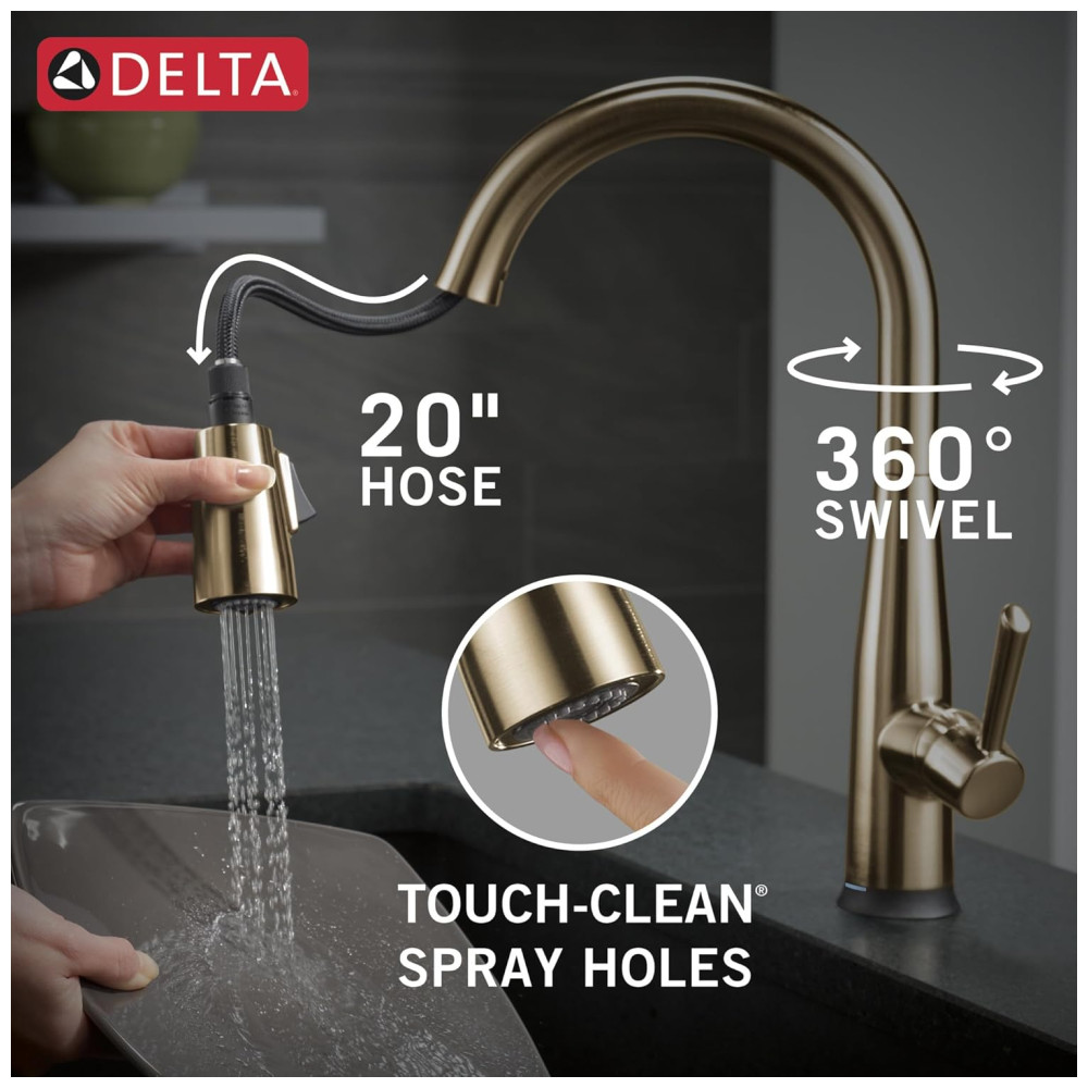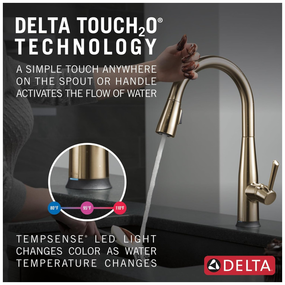 Torneira Cozinha com Tecnologia Touch2O e Pulverizador Pull Down Delta 9113T-CZ-DST Champagne Bronze