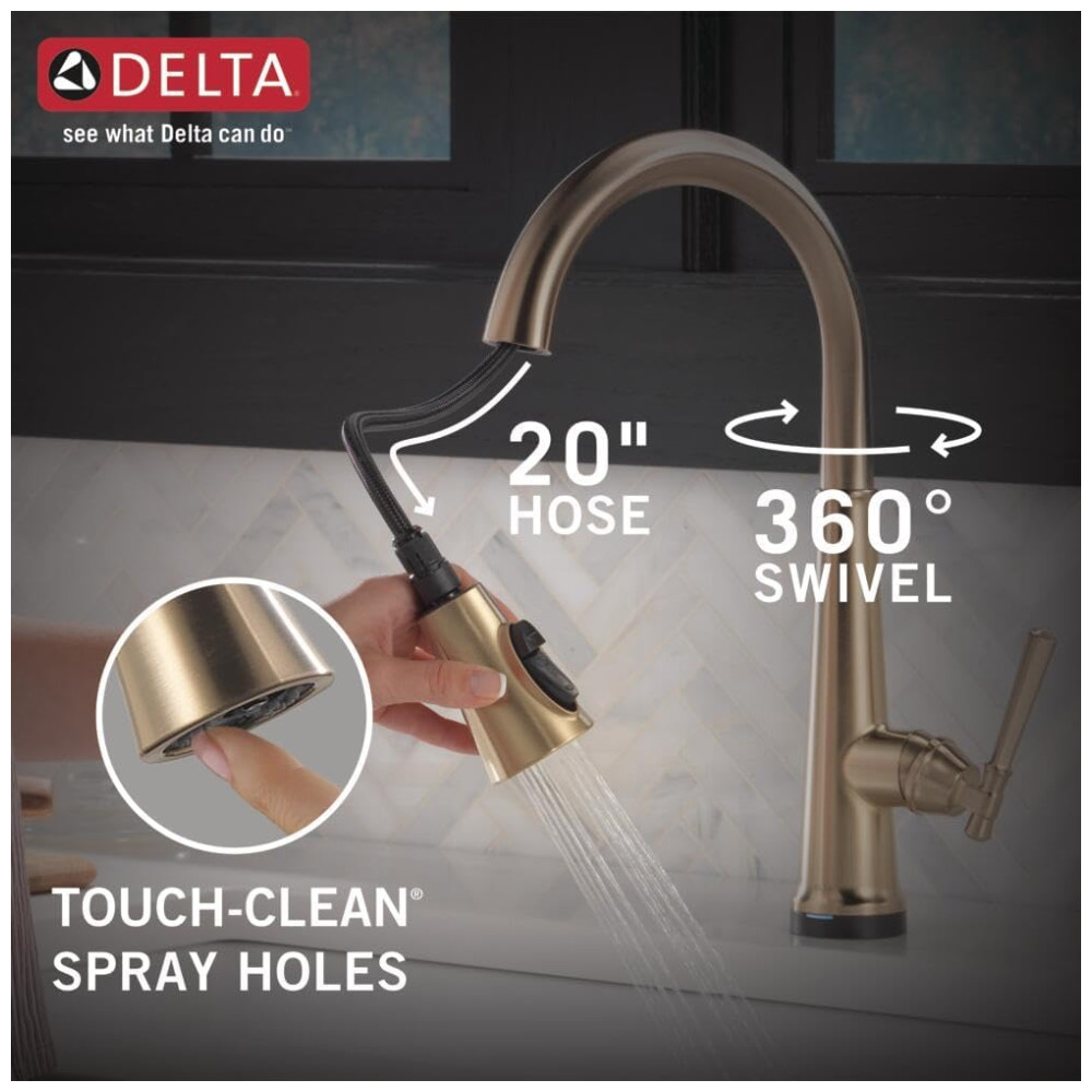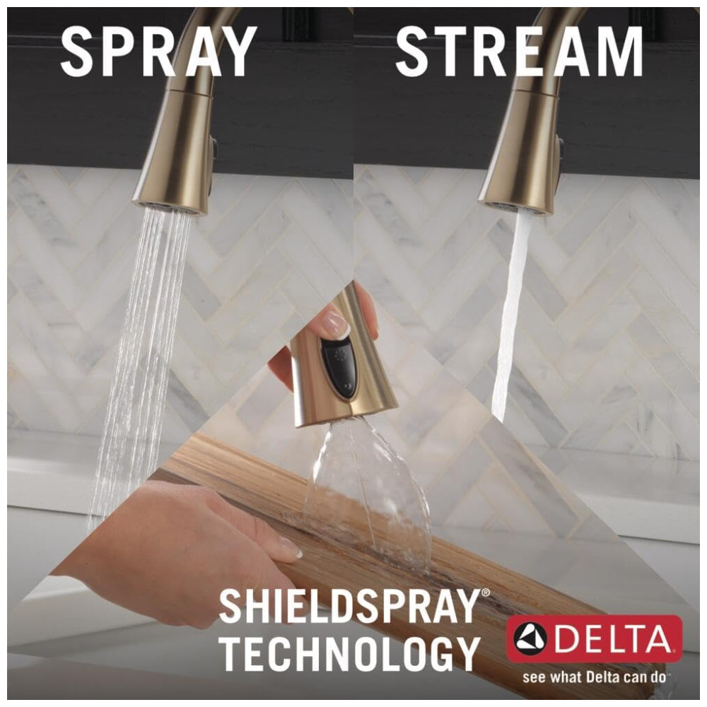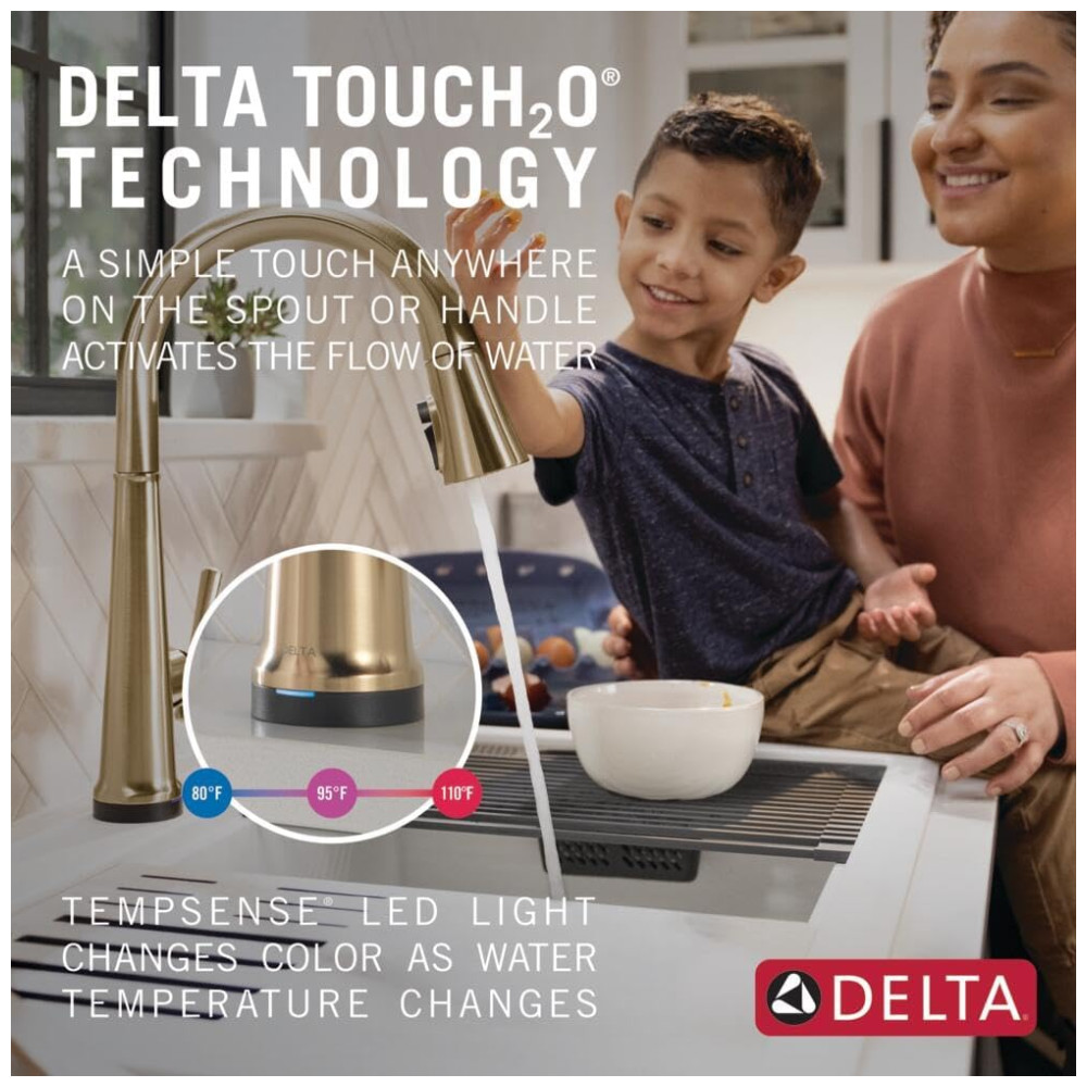 Torneira Cozinha com Tecnologia Touch2O e Pulverizador Pull Down Delta Emmeline Gold 9182T-CZ-PR-DST Champagne Bronze