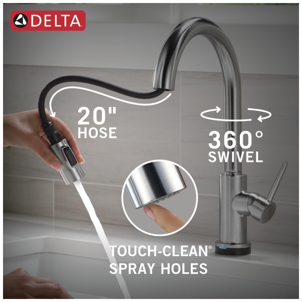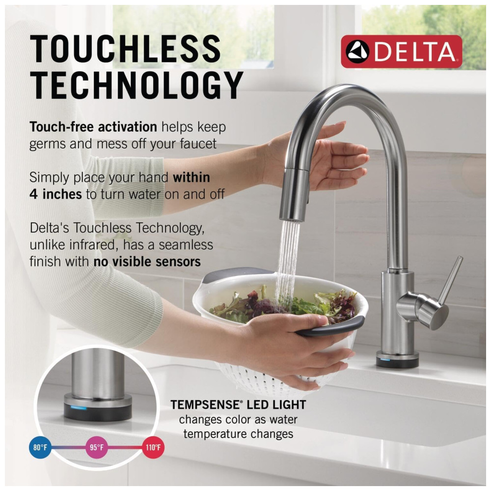 Experimente a Torneira Delta 9159TL-AR-DST com Tecnologia Touchless e Pulverizador Pull Down em Inoxidável Ártico, Níquel Escovado