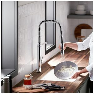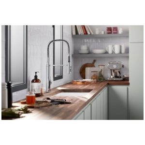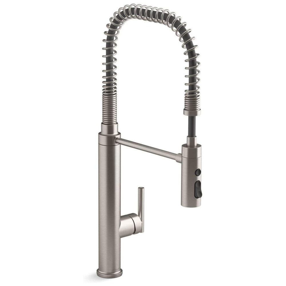 Torneira Cozinha Comercial com Pulverizador Pull Down de 3 Funções em Aço Inoxidável KOHLER 24982 VS Purist.