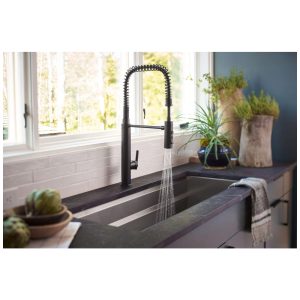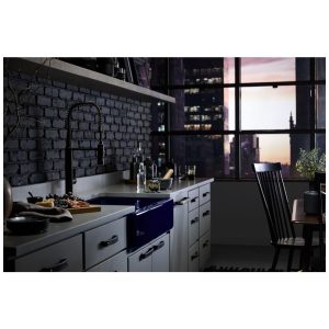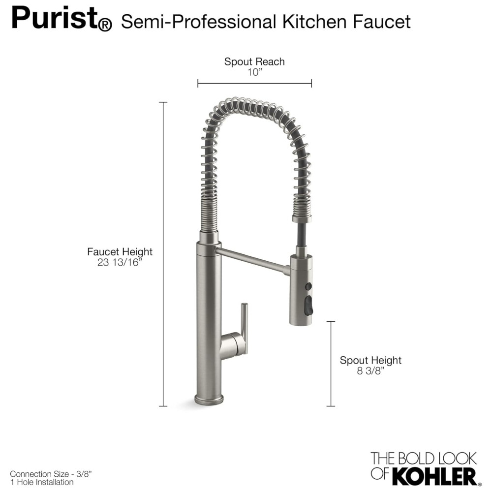 Facilite e maximize suas tarefas de cozinha com a Torneira de Cozinha Purist da Kohler. Combinando uma forma arquitetônica forte com características adaptadas das cozinhas profissionais mais movimentadas, esta torneira semiprofissional possui um pulverizador suspenso de três funções que permite que você percorra uma variedade de tarefas com o toque de um botão. Com um jato arejado para enxágue, spray de varredura para limpeza e função Boost para enchimento rápido de potes e jarras, você pode escolher a taxa de fluxo que melhor se adapta às suas necessidades. A bica alta oferece melhor folga para encher potes e limpar, enquanto a mangueira trançada leve e silenciosa da tecnologia ProMotion e a junta esférica giratória tornam nossa torneira extraível mais confortável e fácil de usar. O sistema de encaixe seguro DockNetik trava o pulverizador em lugar, enquanto a face de pulverização MasterClean é fácil de limpar e resiste ao acúmulo de minerais. As válvulas de disco de cerâmica excedem os padrões da indústria de longevidade e desempenho que são feitos para durar a vida toda em sua cozinha, feitas com nosso premium acabamento duradouro resistente à corrosão e manchas. Projetada para instalação em furo único, as torneiras projetadas KOHLER trazem uma elegância elevada para sua cozinha ou lavanderia, nossos vários estilos são feitos para caber em diferentes pias de cozinha, RV ou qualquer reforma de cozinha. As torneiras KOHLER atendem aos critérios da EPA e são registradas na Comissão de Energia da Califórnia CEC9.