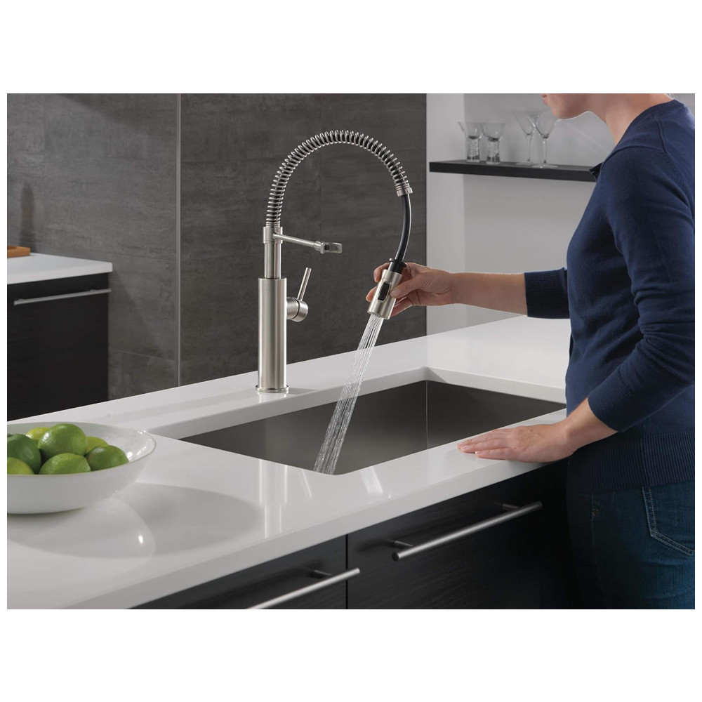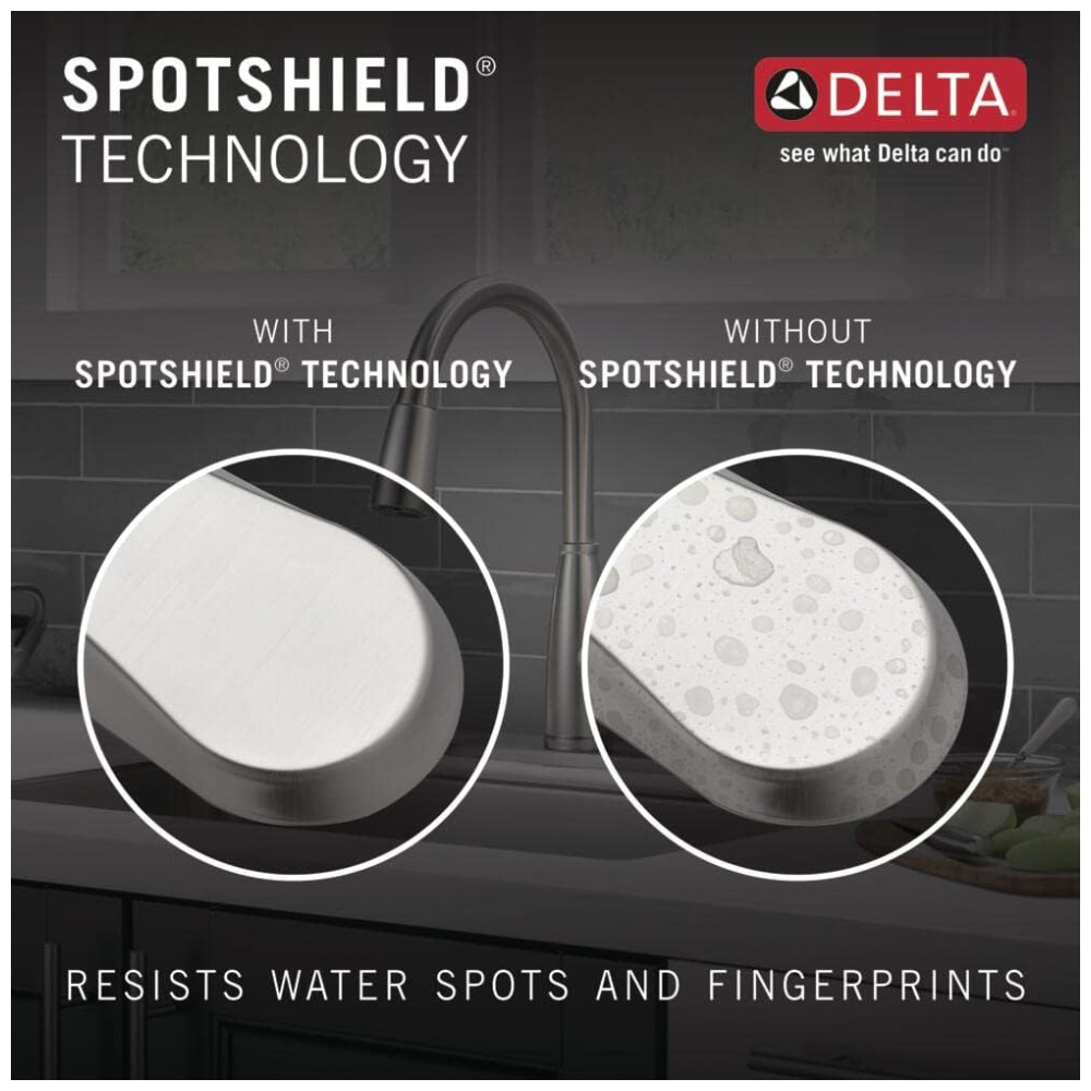 Torneira Cozinha Comercial com Pulverizador Pull Down de Ancoragem Magnética Acabamento SpotShield Inoxidável Delta Antoni 18803-SP-DST