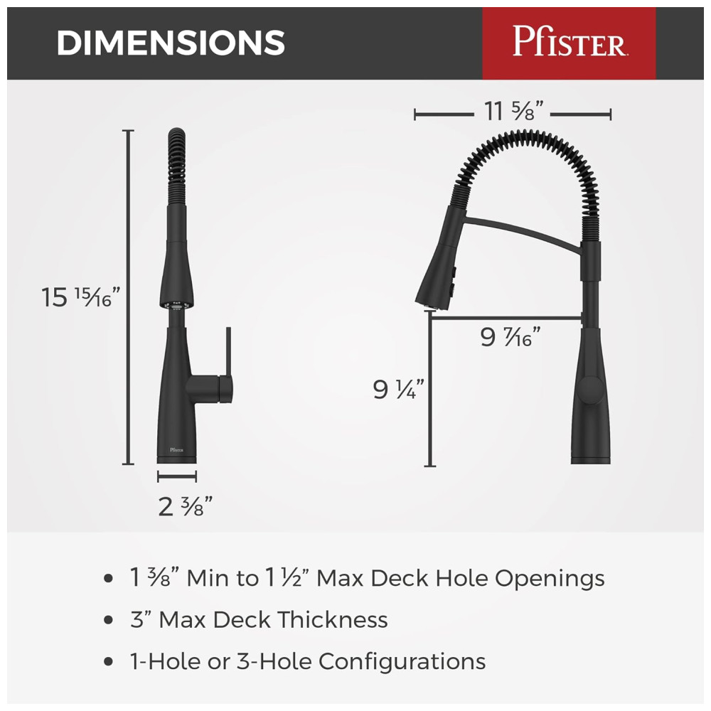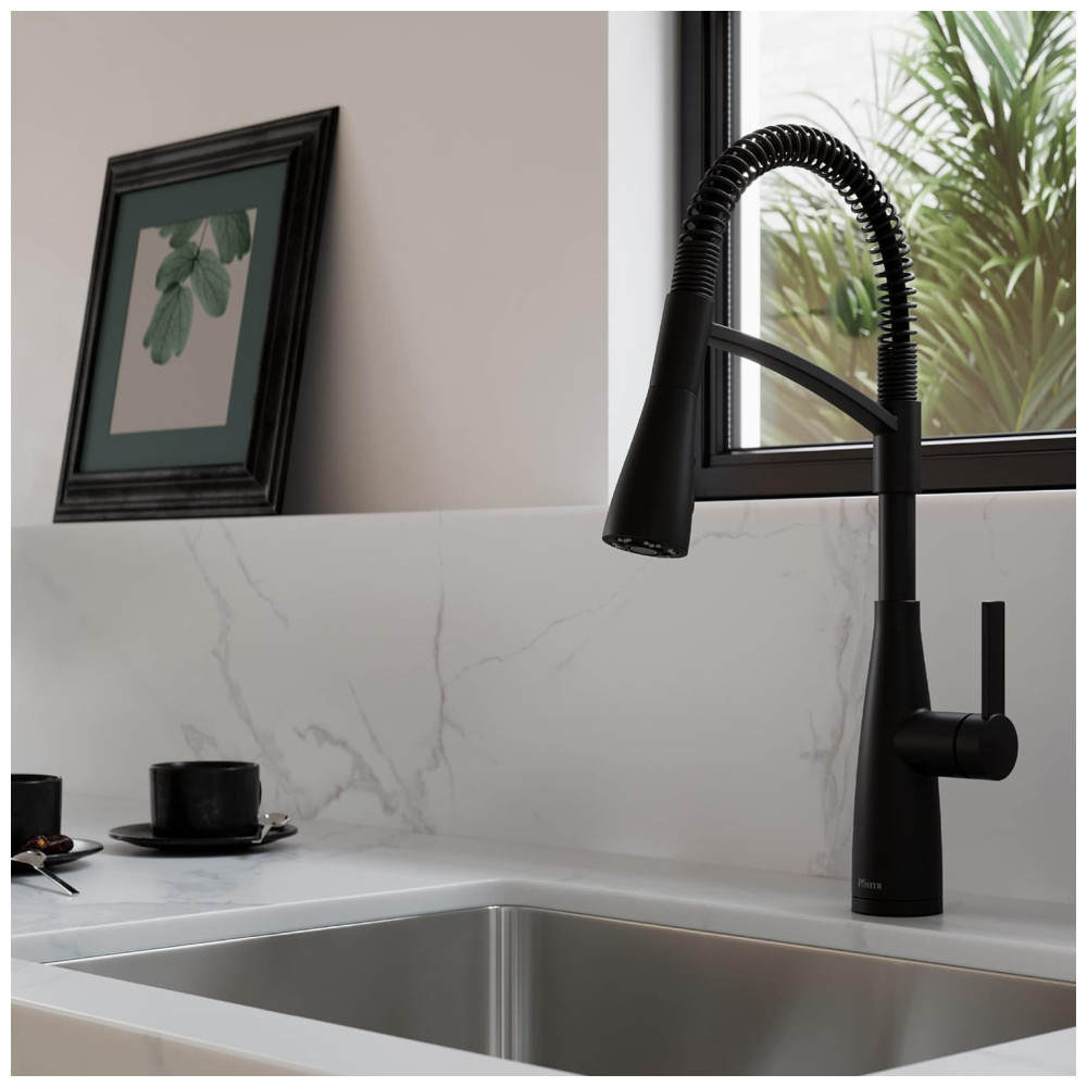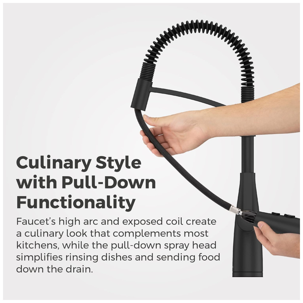 Torneira Cozinha Comercial com Pulverizador Pull Down Sprai e Arco Alto Pfister Kwan F5297KWCB Preto Fosco