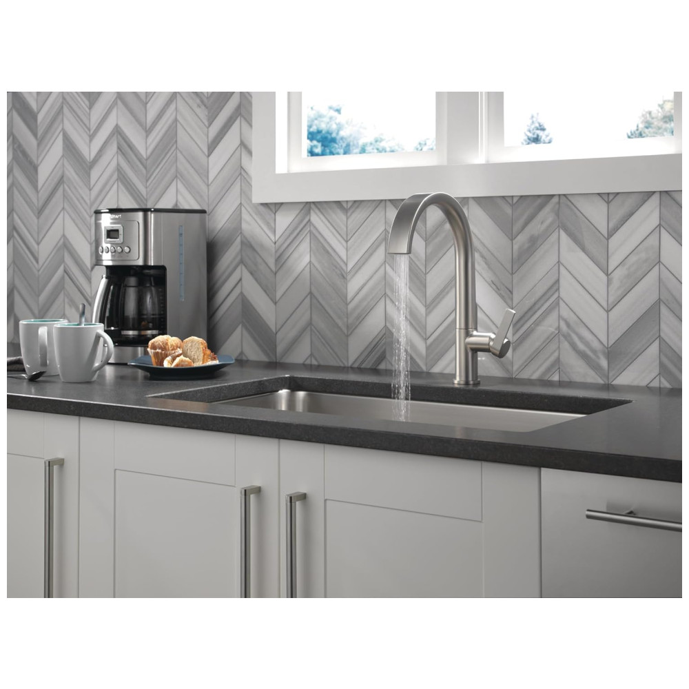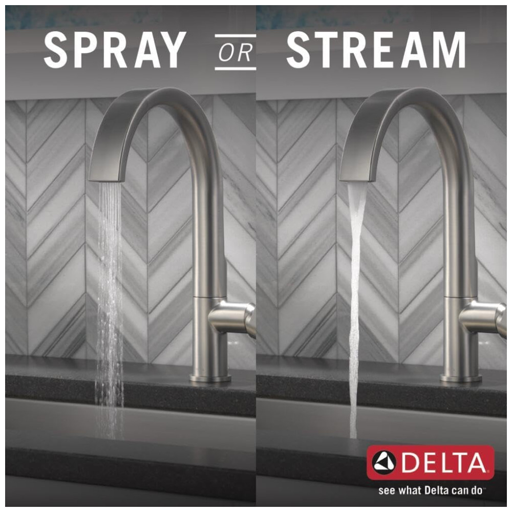 A torneira Keele é uma opção ideal para quem busca um design minimalista e fluidez na cozinha. Com o Delta MagnaTite Docking, o pulverizador pull down é mantido no lugar por um ímã integrado, garantindo precisão e praticidade. Além disso, a torneira possui furos de pulverização TouchClean, que facilitam a limpeza do acúmulo de cálcio e calcário. A instalação é fácil e pode ser feita em pias de furo único ou 3 furos e 20 cm, com todos os componentes necessários inclusos na caixa. A torneira ainda conta com um arco alto que gira 360 graus e uma mangueira retrátil de 50 cm, além de um pulverizador de função dupla. A torneira Delta é ADA Compliant e cumpre a legislação sem chumbo. Todos os produtos Delta atendem ou excedem os requisitos de desempenho de produto aplicáveis e padrões da indústria de segurança.