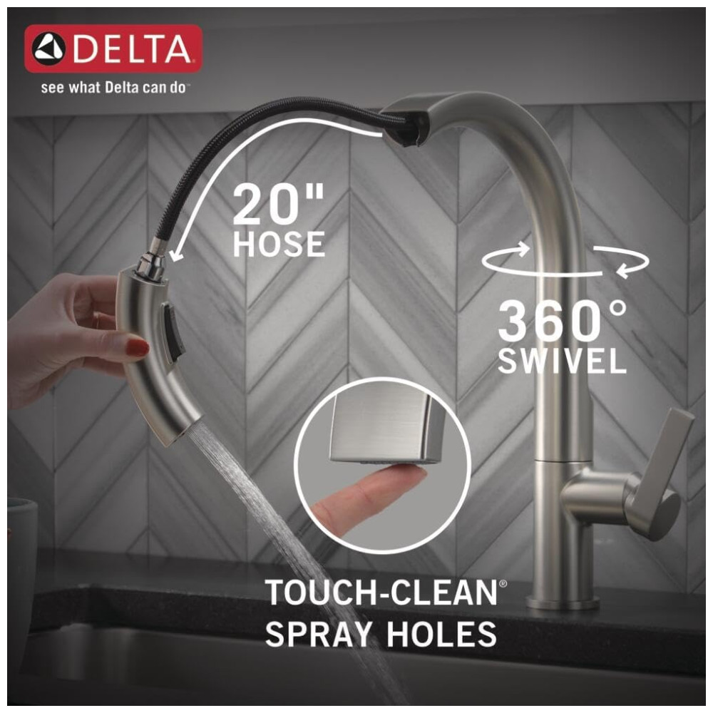 Torneira Cozinha em Aço Inoxidável com Pulverizador Pull Down Magnético Delta 19824LF-SP Aço Escovado