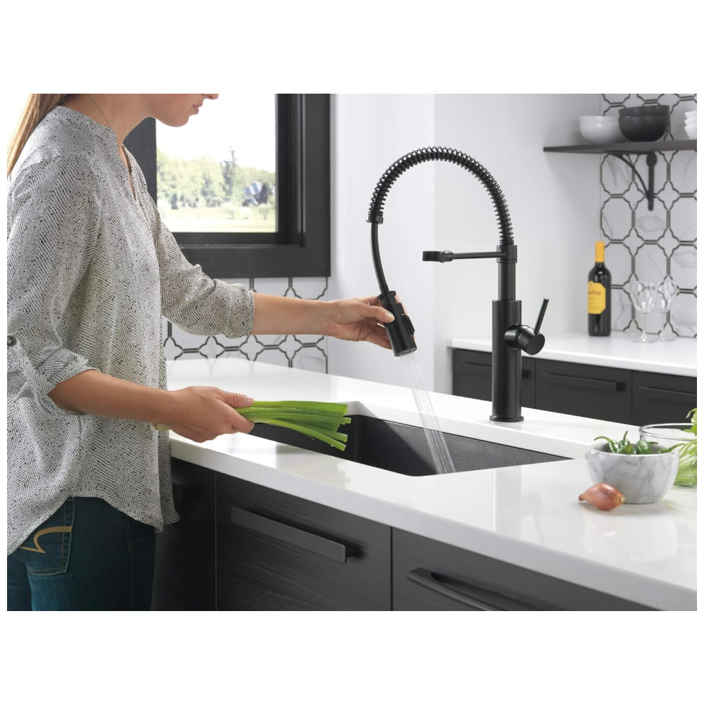 Torneira Cozinha Estio Comercial com Pulverizador Pull Down de Ancoragem Magnético Delta Antoni Preto Fosco