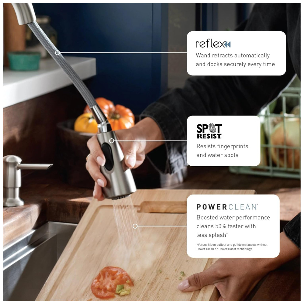 Torneira Cozinha Inteligente com Controle de Voz e Sensor de Movimento Aço Inoxidável Moen Align 7565EVSRS