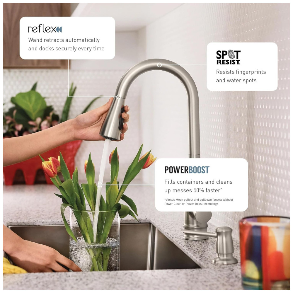 Torneira Cozinha Inteligente com controle de Voz Sensor de Movimento e Pulverizador Pull Down Moen Arbor 7594EVSRS Inoxidável