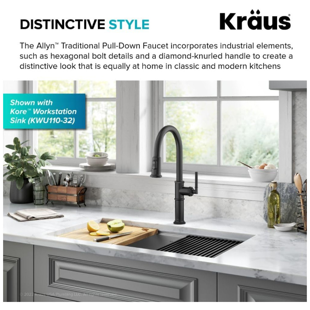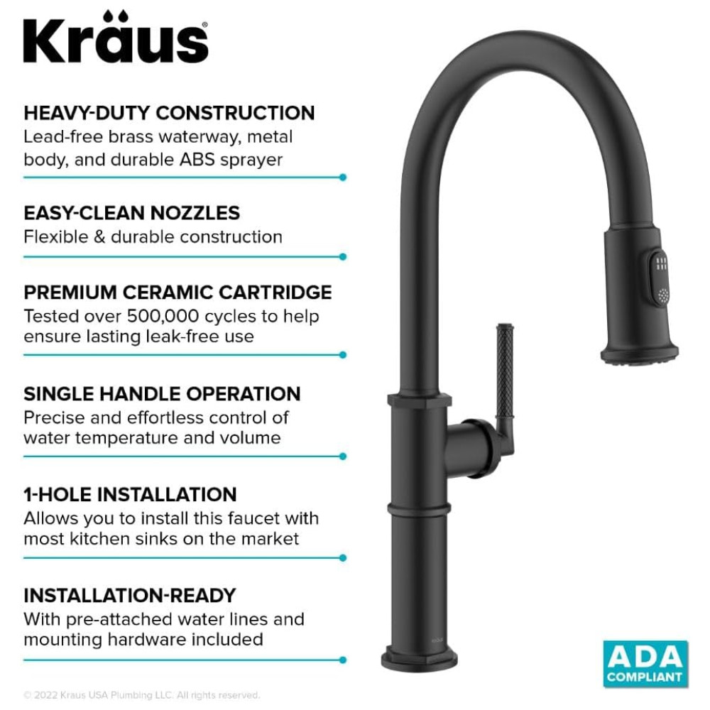 Torneira Cozinha Tradicional Estilo Industrial com Pulverizador de 2 Funções KRAUS® Allyn KPF-4100MB Preto Fosco