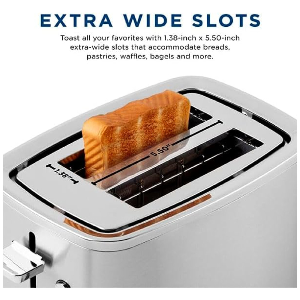 Slots de torradeira extra largos acomodam vários tipos de pães, bolos, waffles e bagels com slots largos que medem x .